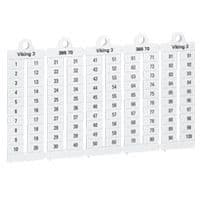 Repères chiffres de 101 à 200 pour blocs de jonction Viking3 pas de 8mm Lecture horizontale du repère installé Présenté par plaques de repères prédécoupés