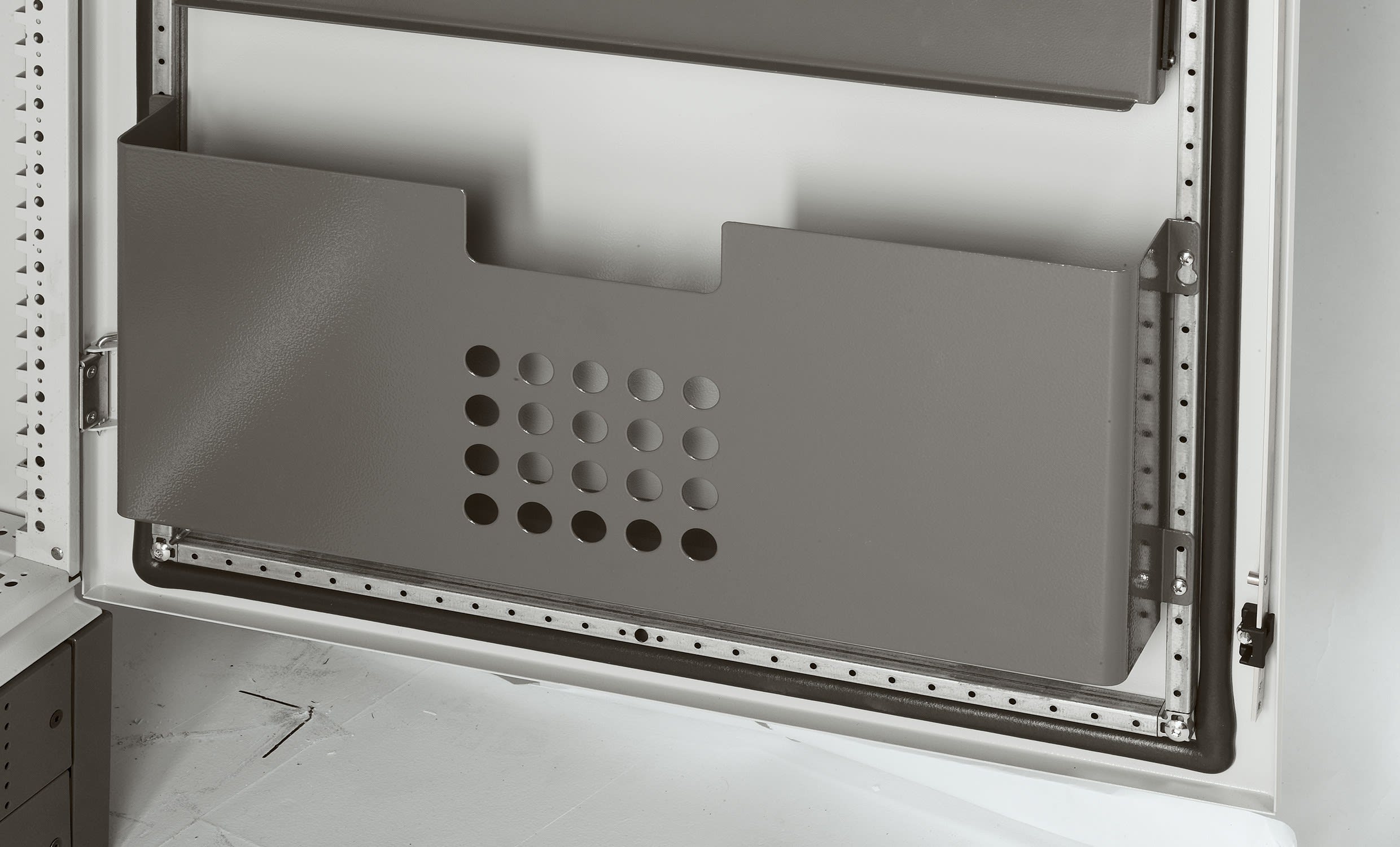Pochette à plans A3 métal pour porte armoire largeur 800mm - 275x650x100mm - fixation sur porte-torons - RAL7012