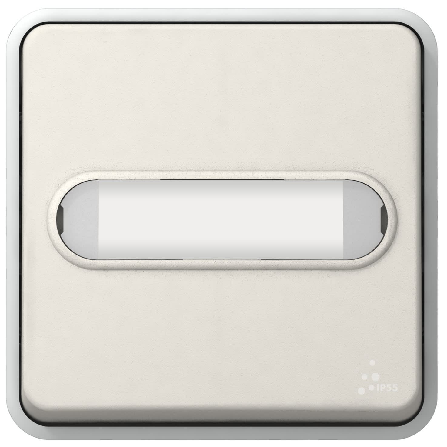 Poussoir NO lumineux avec porte-étiquette Plexo composable - Blanc - À équiper d'un support plaque pour montage en encastré dans boîte ou d'un boîtier pour montage en saillie