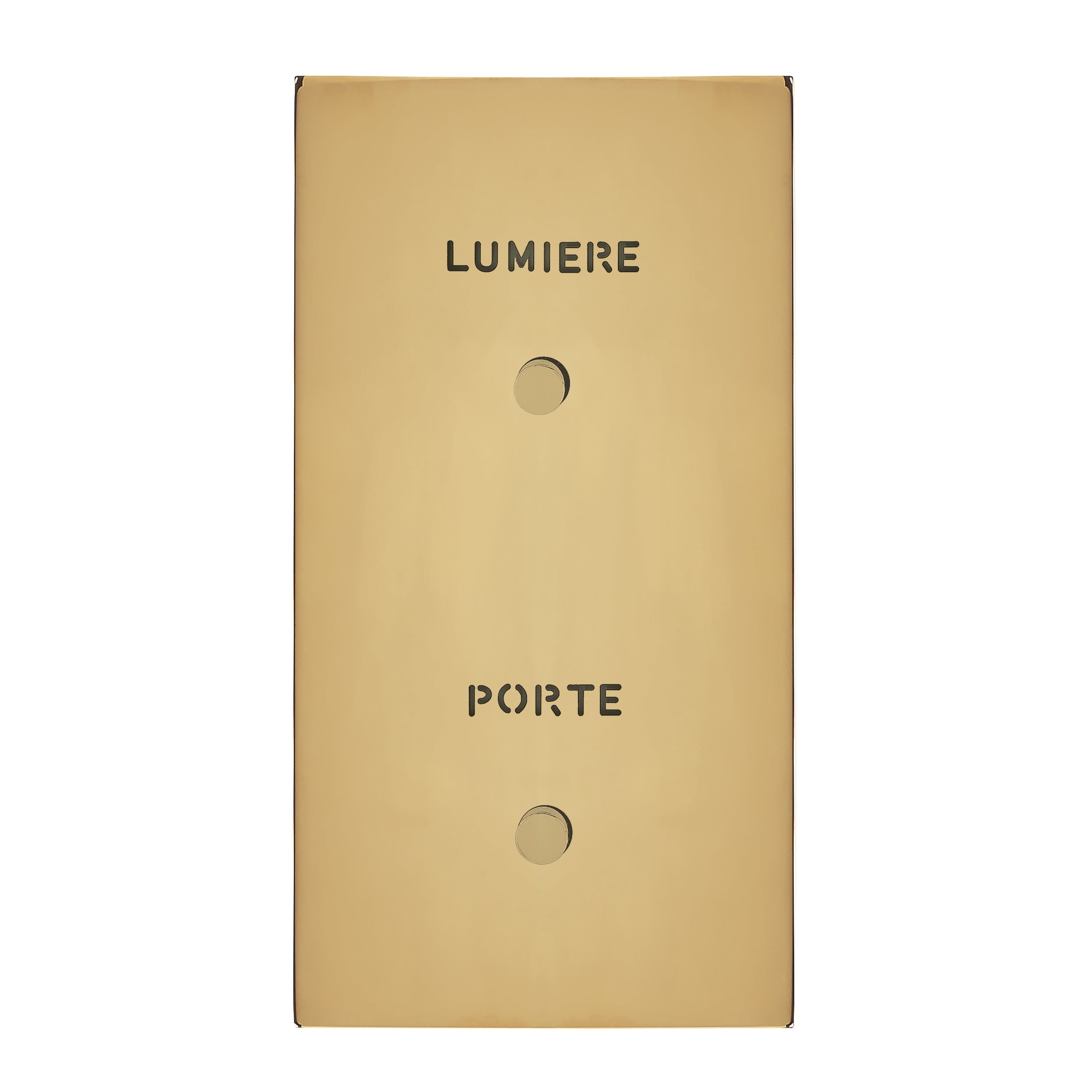 Poussoirs lumineux avec marquage ~Porte~ et ~Lumière~ Art d'Arnould Univers Epure Or miroir Dimensions grand carrée double 80x151mm Se monte dans boîte d'encastrement 2 postes