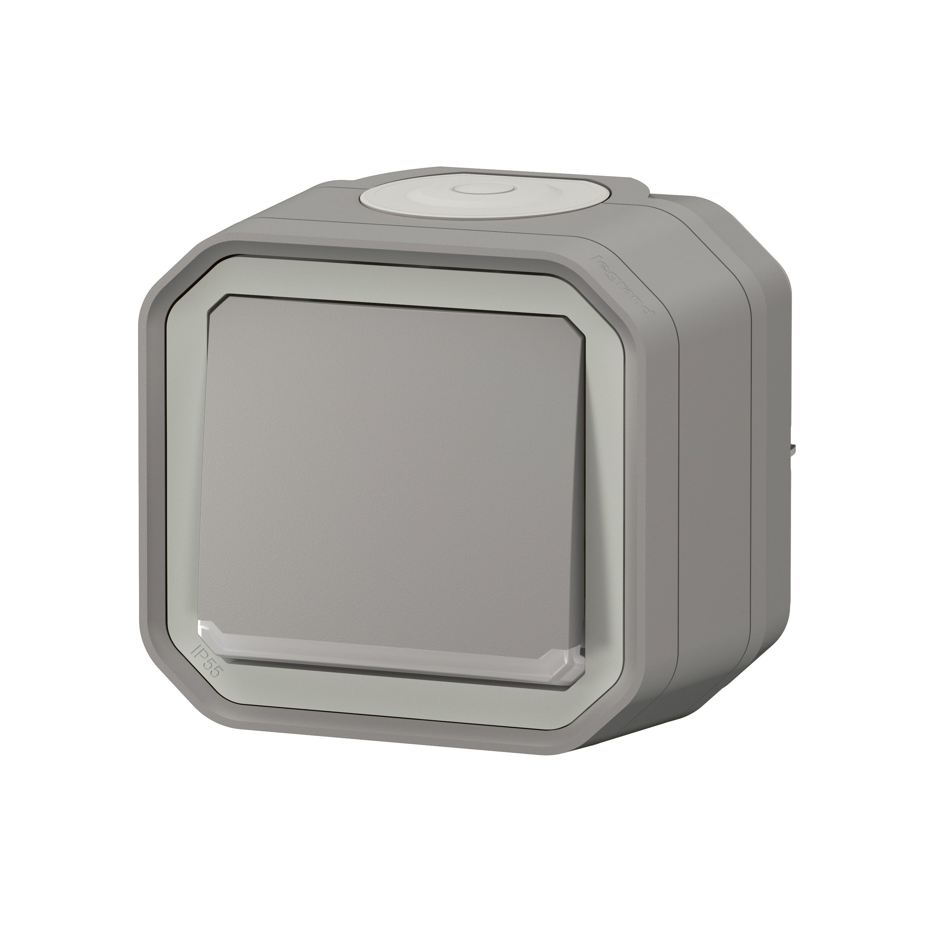 Legrand - Poussoir NO lumineux Plexo complet saillie - gris - 070010