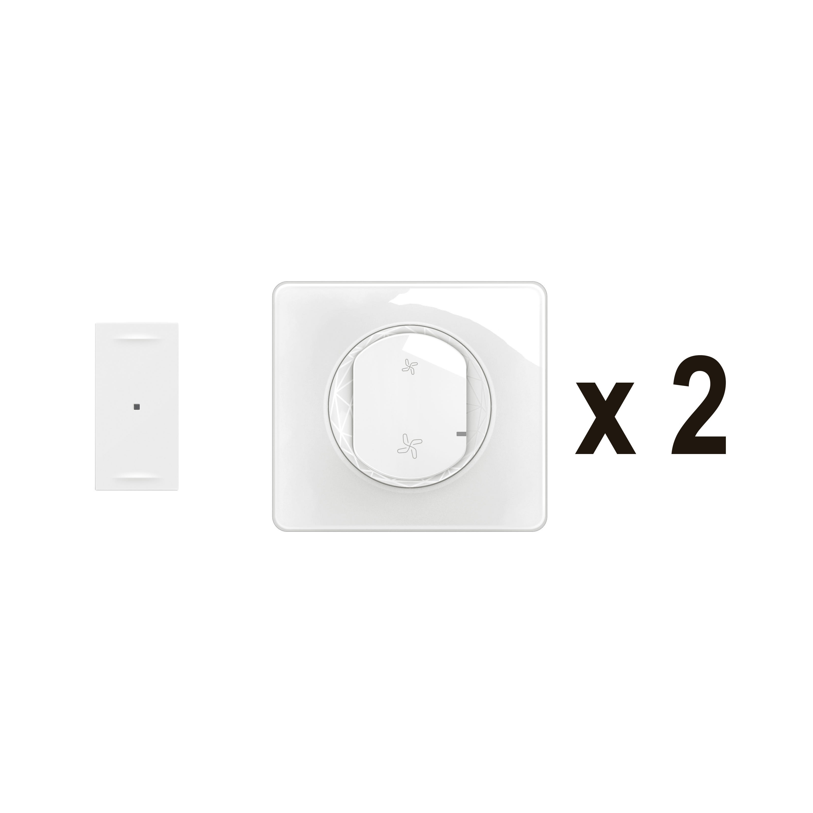 Permet de commander une VMC 2 vitesses depuis 2 points de commande sans tirer de fils Les commandes et le micromodule sont appairés et fonctionnent en radio 2,4GHz, aucune configuration préalable n'est requise Composition :- 1 micromodule VMC- 2 commandes sans fils VMC, gestion petite et grande vitesse, compatibles avec tous types de moteur de VMC 2 vitesses (moteur 500VA max.) - finition BlancLivrées complètes avec plaques de finition Blanc Emaillé et adhésifs pour fixation murale ou à poser sur un meuble Installation évolutive : en associant le Prêt-à-Poser à un pack de démarrage, les produits pourront être contrôlés via l'App. Home + Control et par la voix Possibilité de rajouter des commandes sans fils pour VMC