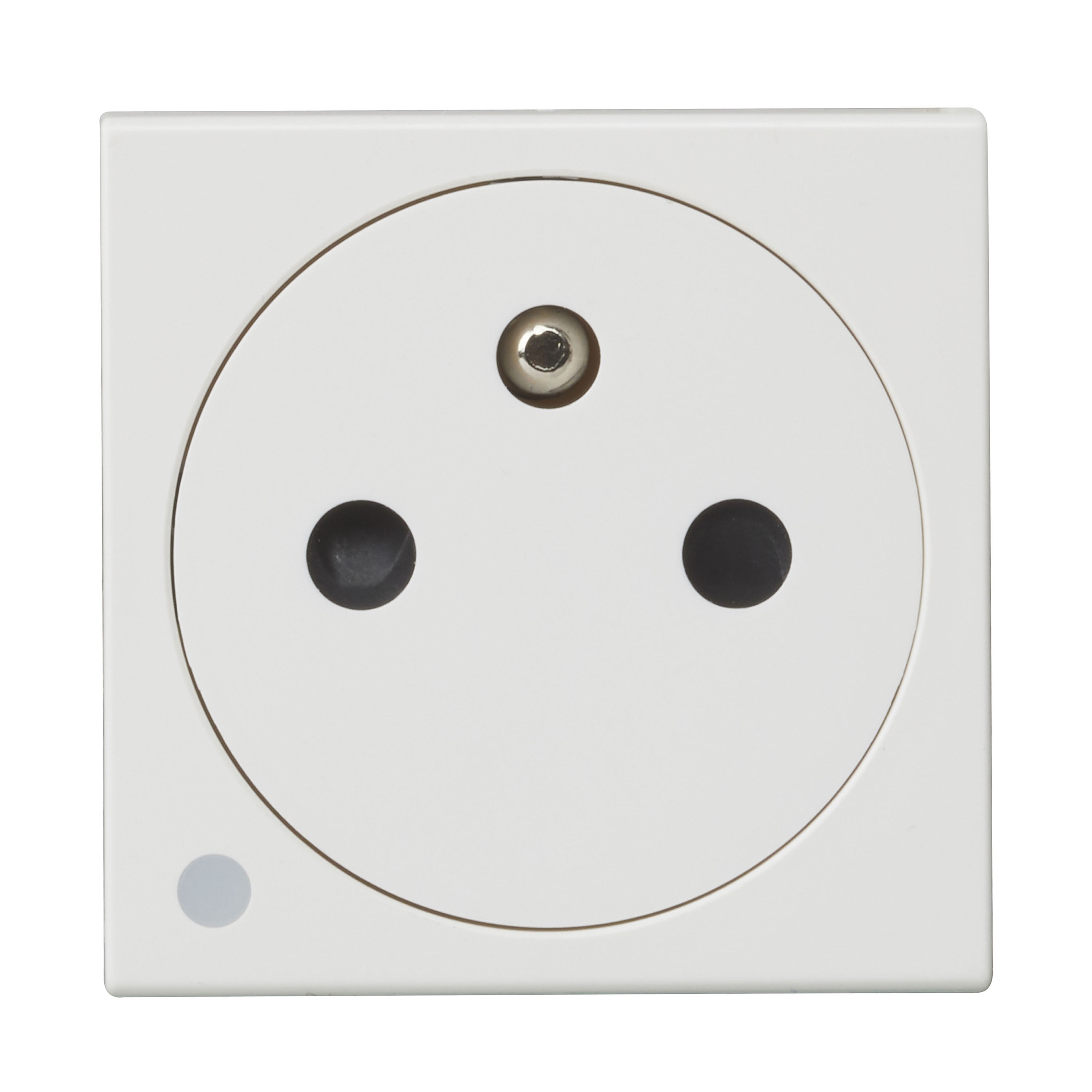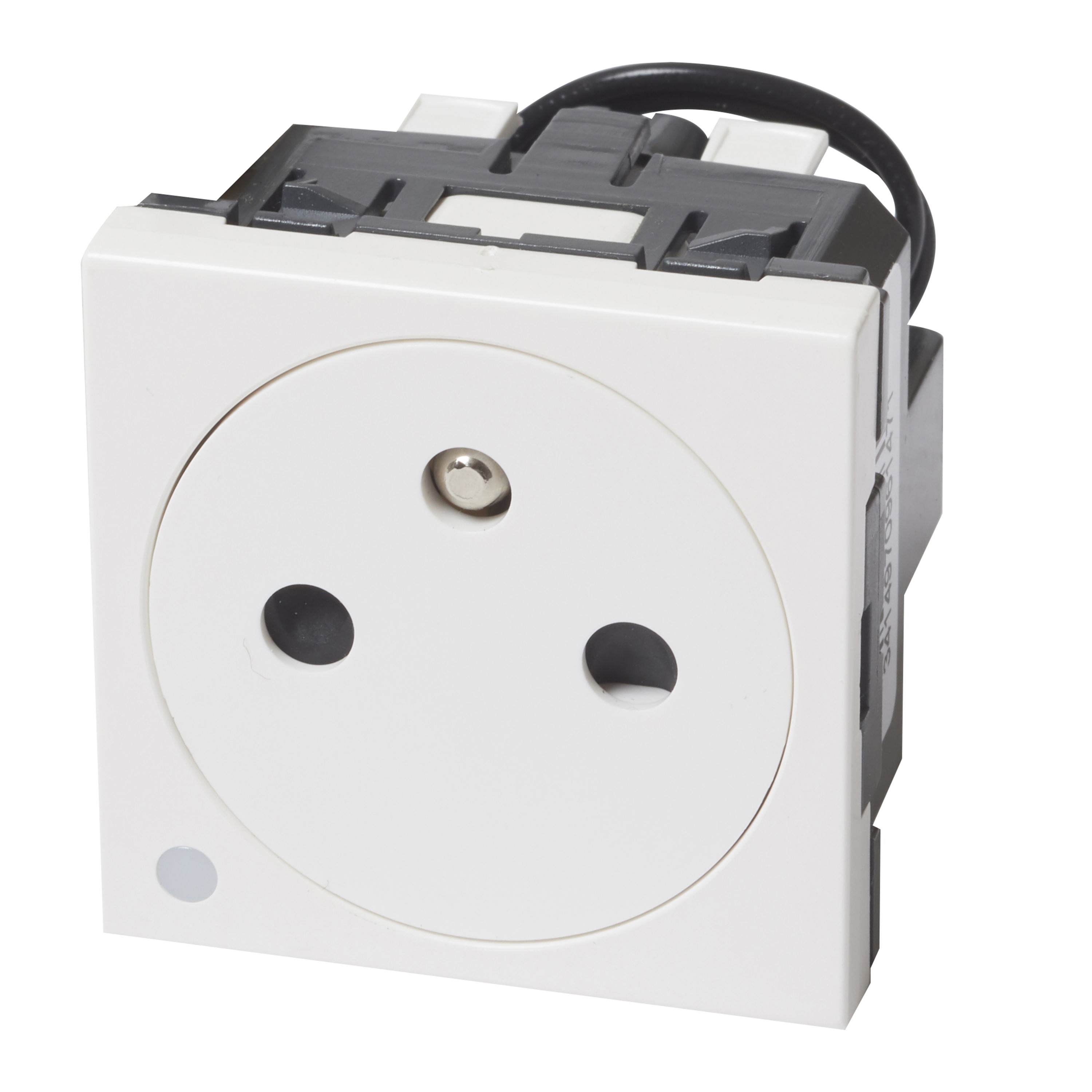 Prise de courant 2P+T Surface Mosaic 16A 230V - À équiper d'un support et d'une plaque Mosaic 2 modules Blanc antimicrobien avec voyant référence 067664 livré, contient des ions d'argent qui limitent le développement des bactéries en surface Repérage des bornes facilitant le câblage Connexion par bornes automatiques à levier permettant la connexion rapide sans outil