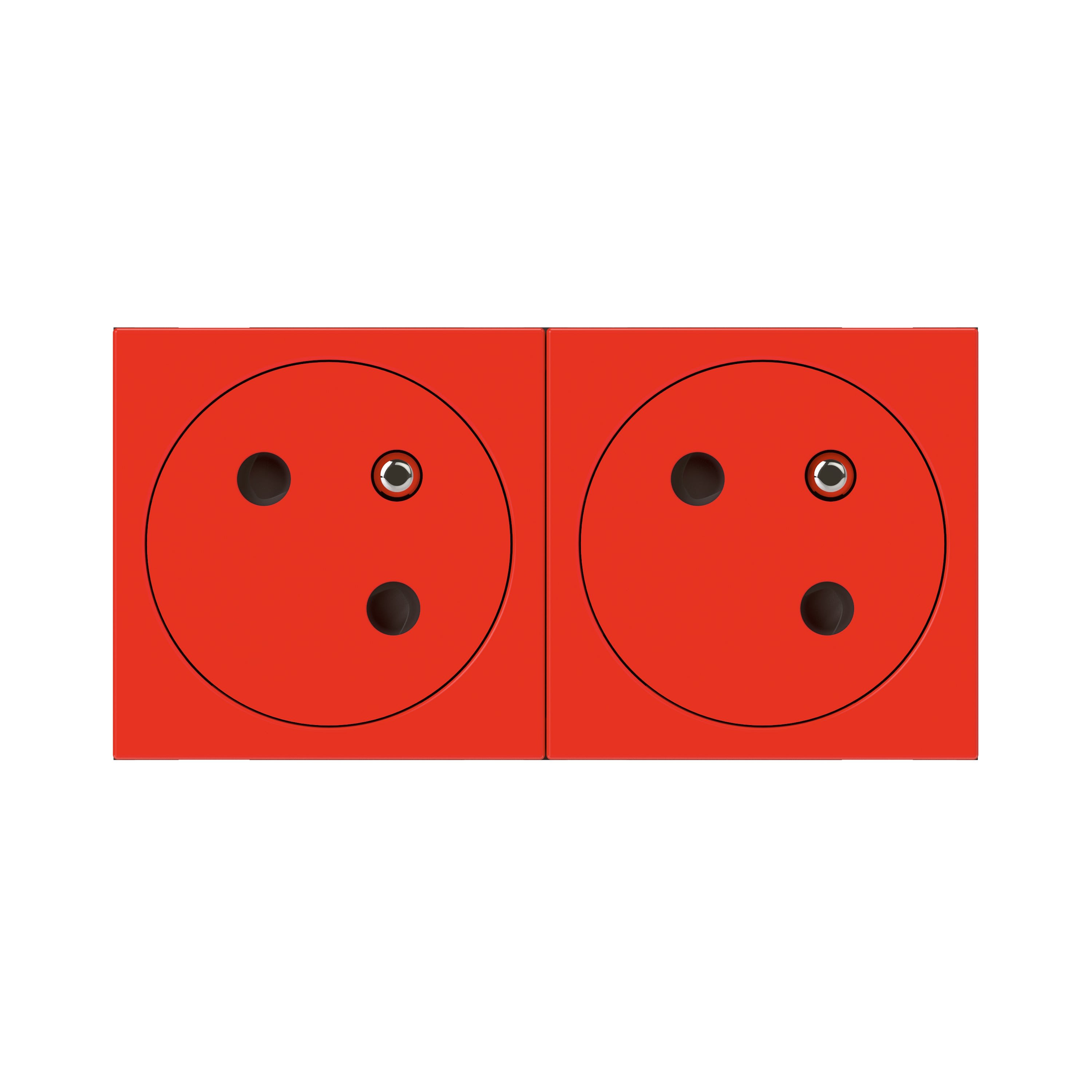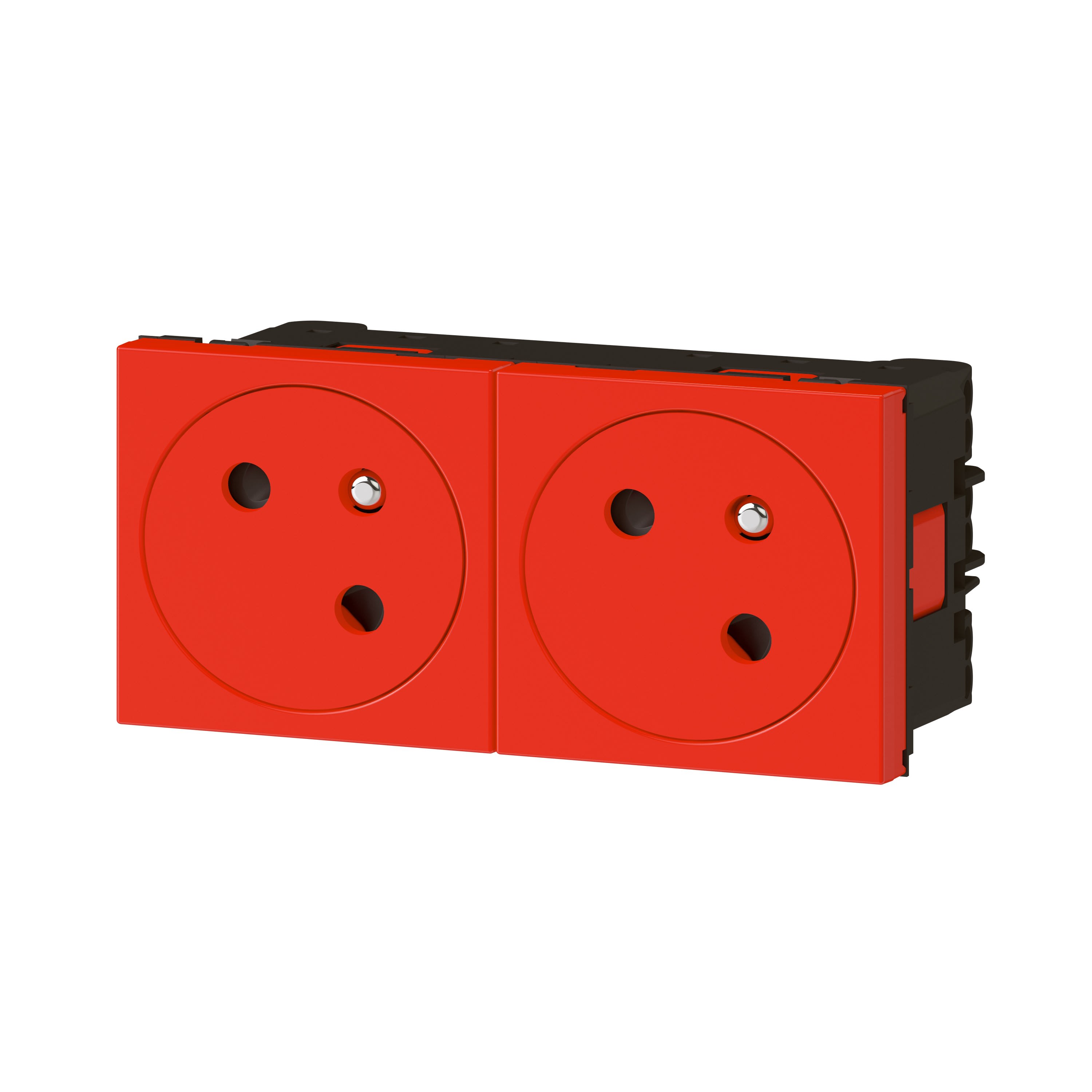 Double prise de courant 2P+T Surface Mosaic Link sans détrompage à puits incliné à 45° à raccordement latéral par bornes automatiques à levier 4 modules finition rouge - à équiper d'un support et d'une plaque Mosaic
