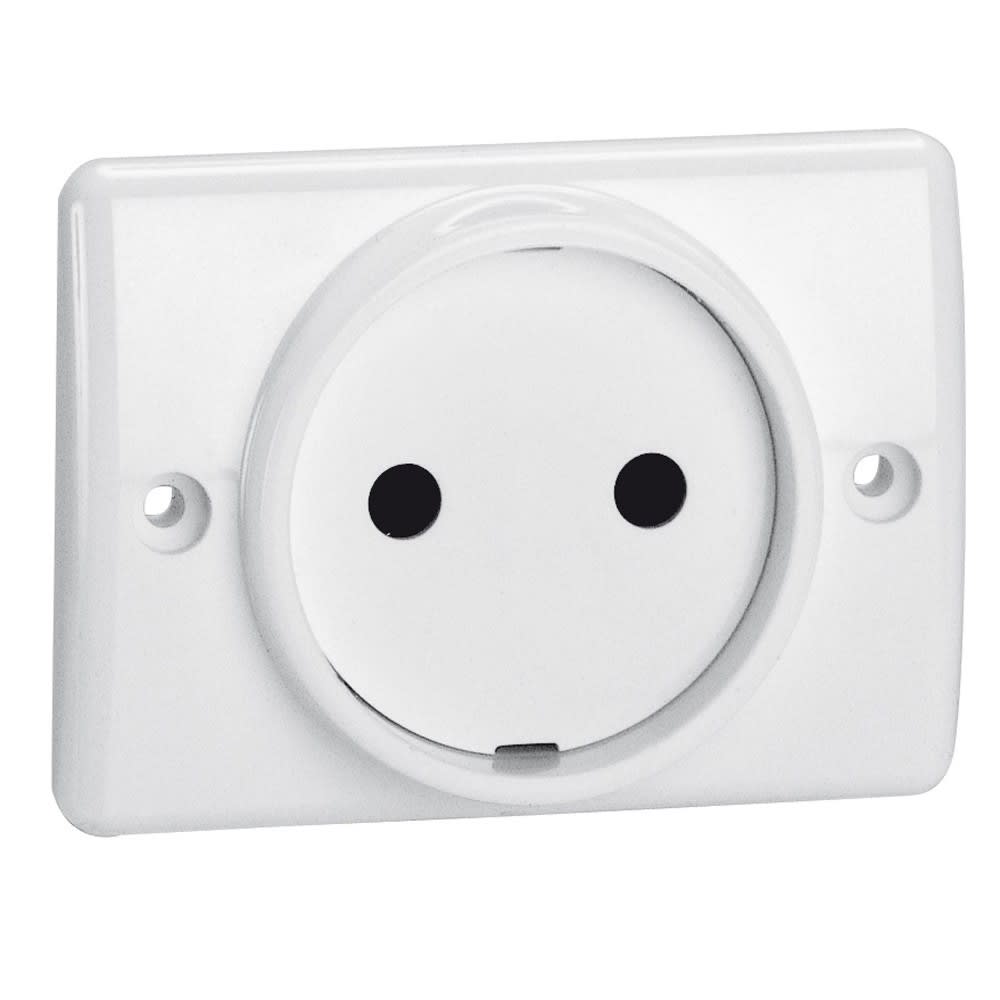 Prise 2P à encastrer pour plinthe 16A - 250V~ 65mm x 48mm Entraxe 19mm Blanc