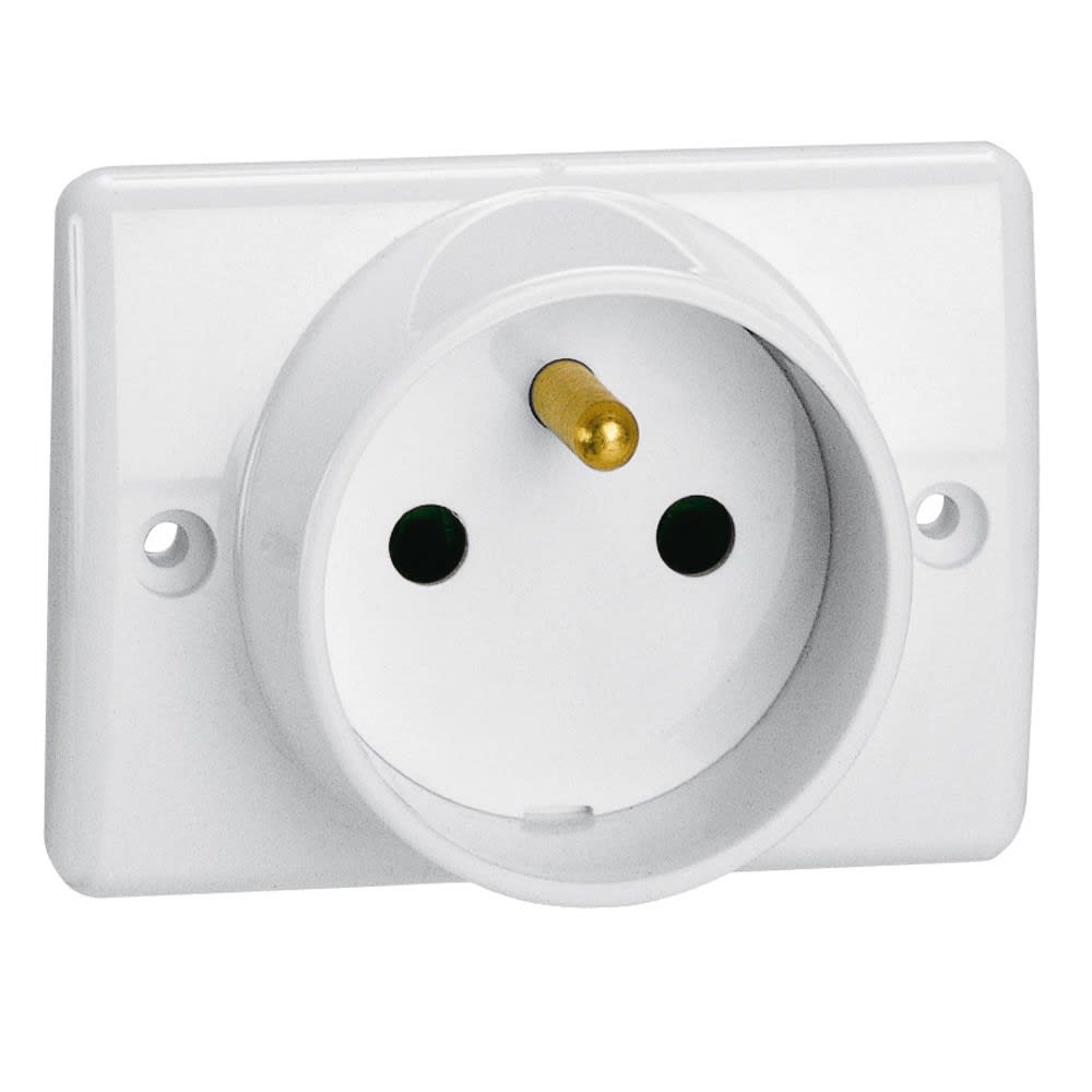 Prise 2P+T à encastrer pour plinthe 16A - 250V~ 70mm x 50mm Entraxe 19mm Blanc