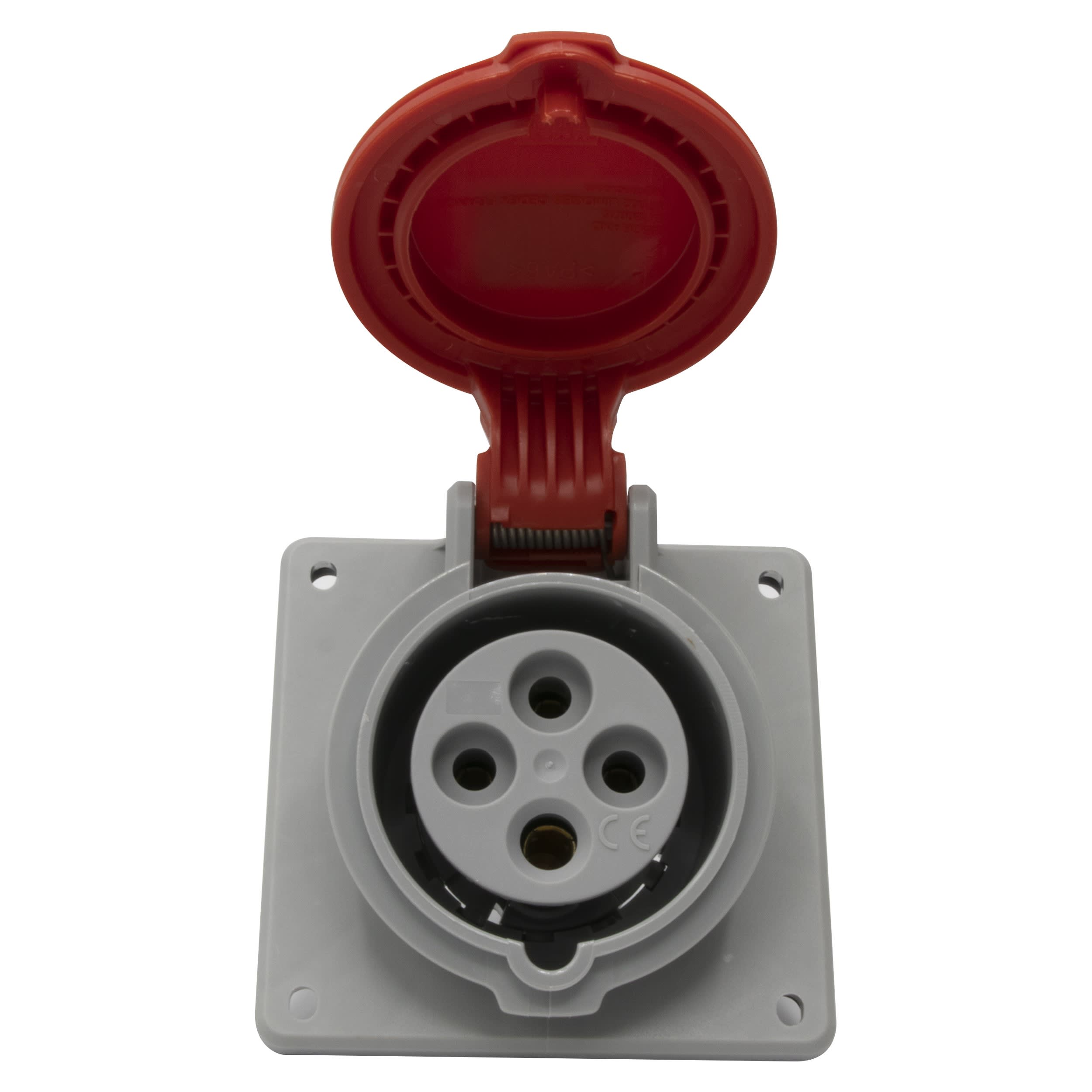 Prise à entraxes unifiés fixe P17 IP44 Rouge - 380V~ à 415V~ - 16A - 3P+T Plastique IK09