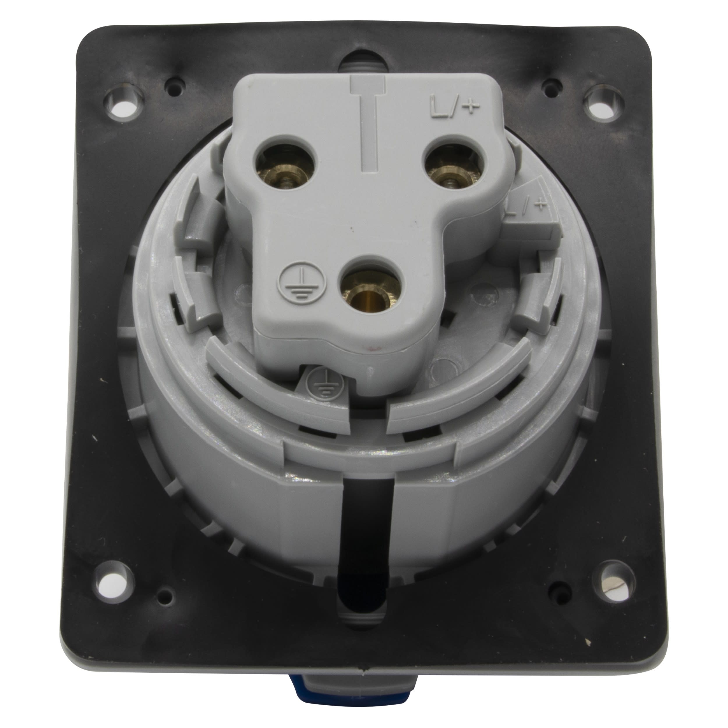 Prise à entraxes unifiés fixe P17 IP44 Bleu - 200V~ à 250V~ - 32A - 2P+T Plastique IK09