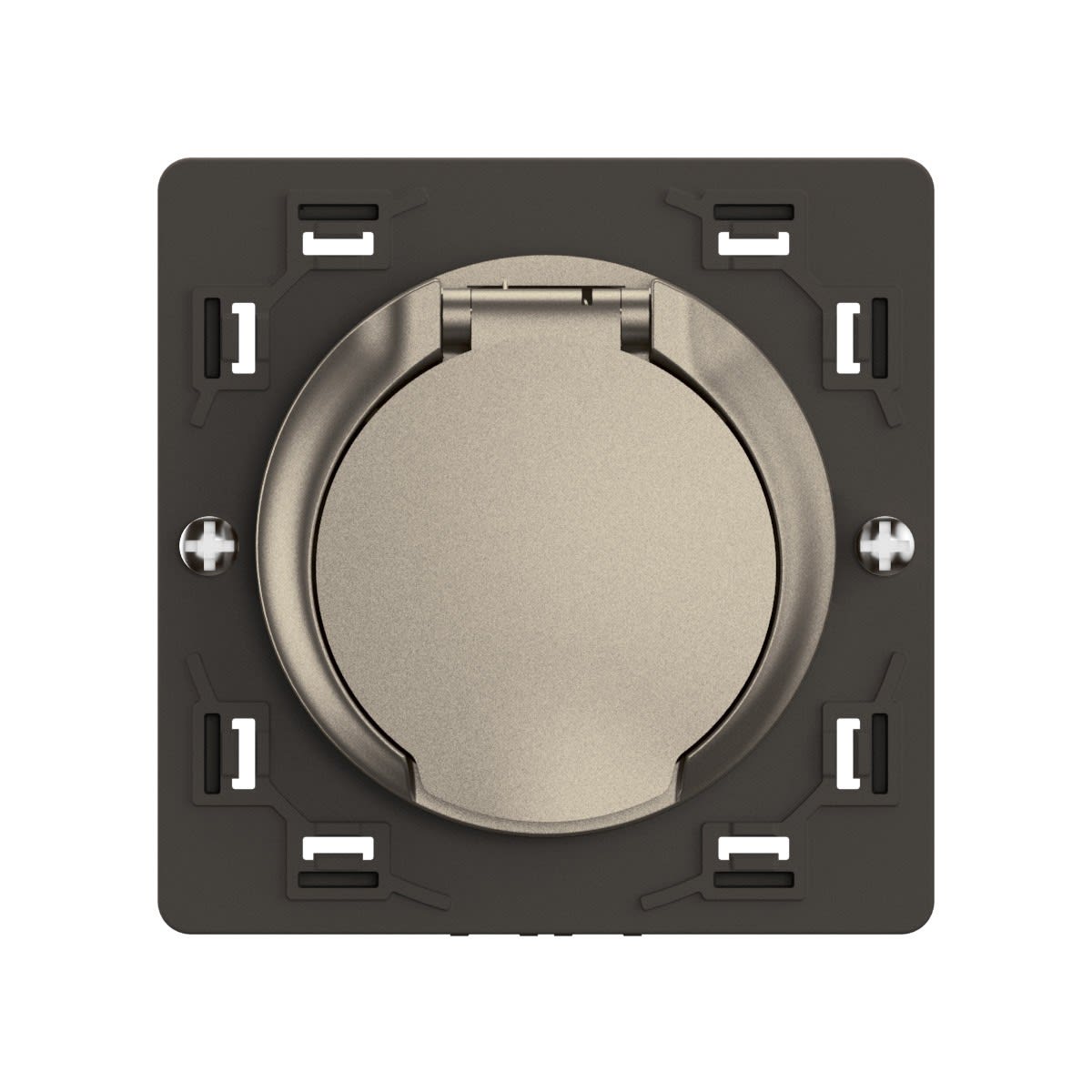 Prise d'aspiration centralisée Céliane avec contact avec enjoliveur Titanium - à équiper d'un support et d'une plaque de finition Céliane