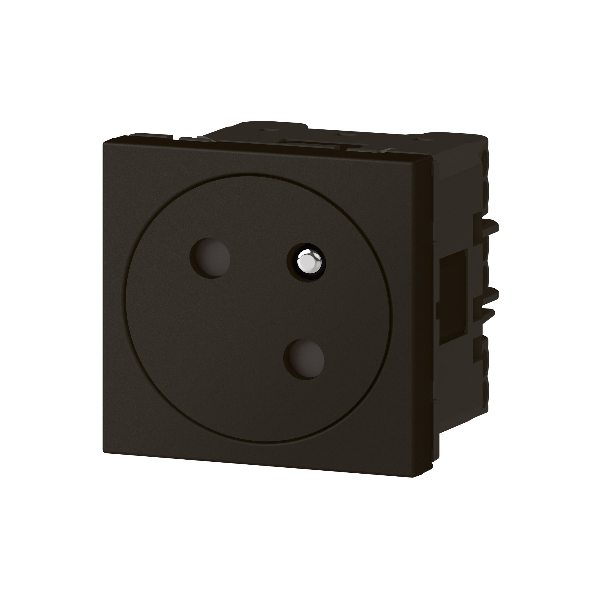 Prise de courant 2P+T Surface Mosaic Link 16A 230V à connexion latérale par bornes automatiques bi-stables - À équiper d'un support et d'une plaque Mosaic 2 modules - Noir mat RAL9017 L'inclinaison à 45° des puits de prise permet de gagner de la place lors du branchement de plusieurs appareils electriques ou electroniques volumineux Résistance aux chocs renforcée : indice IK07 Connexion par bornes automatiques à levier permettant la connexion rapide sans outil