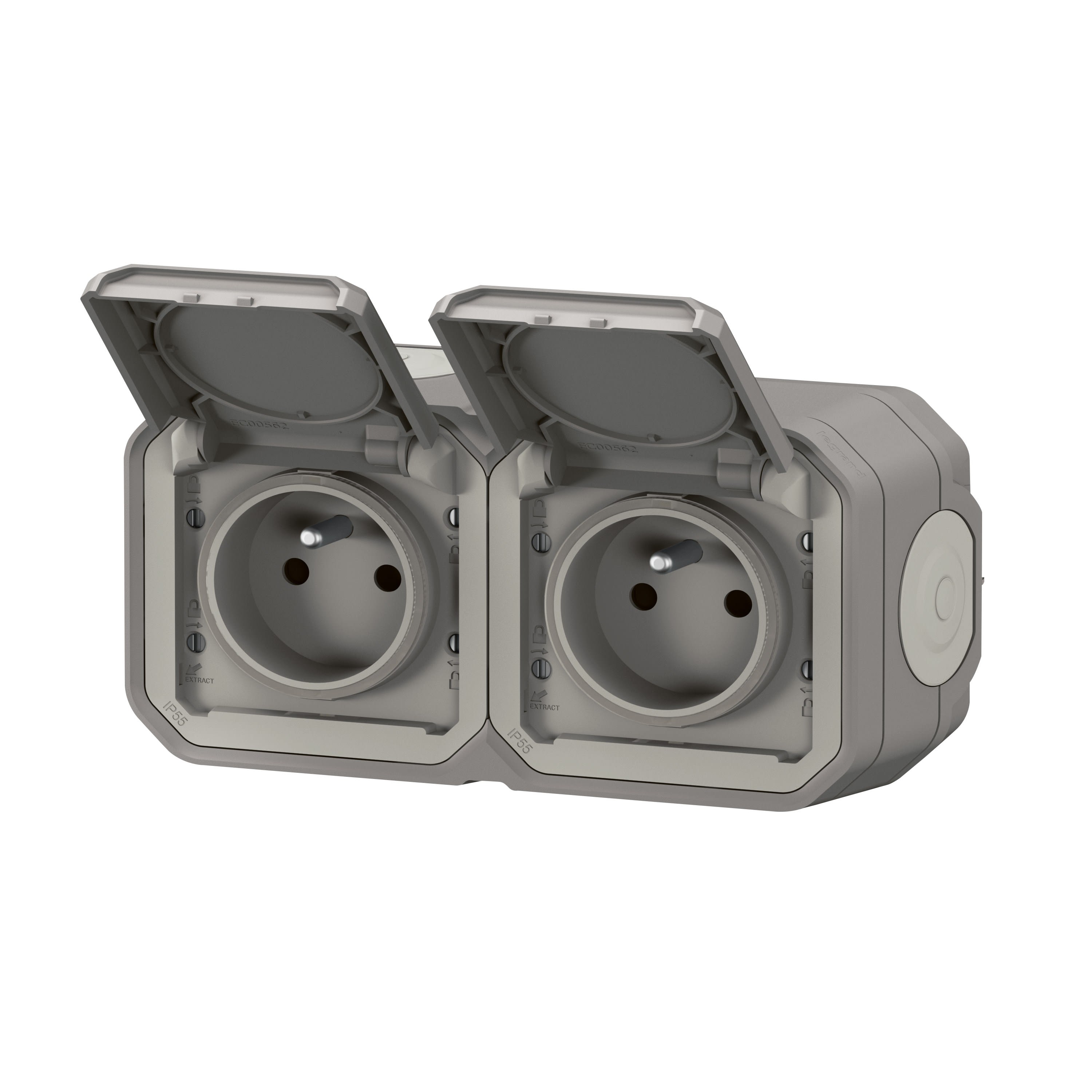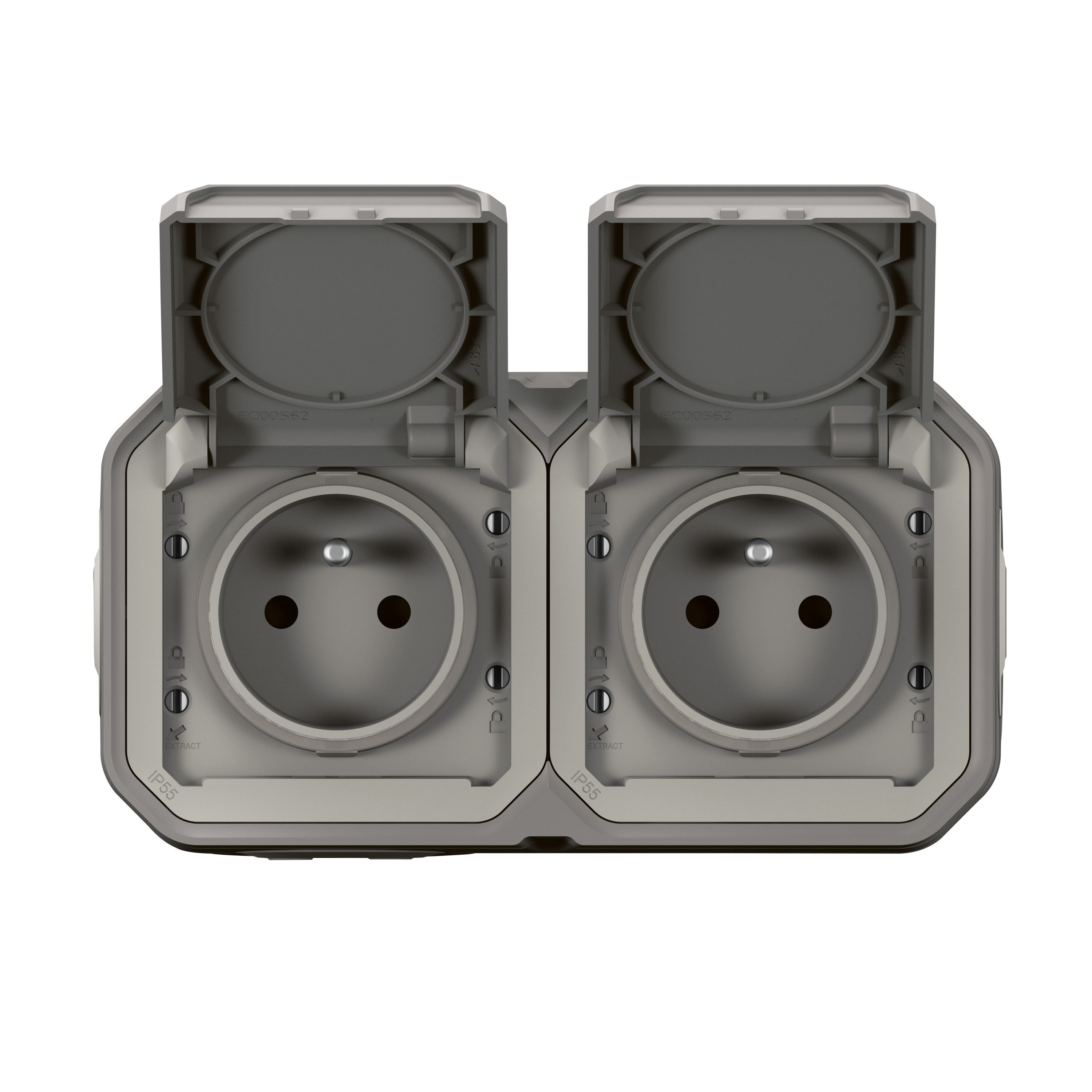 Legrand - Prise de courant 2x2P+T horizontale Plexo complet saillie gris - 069768L