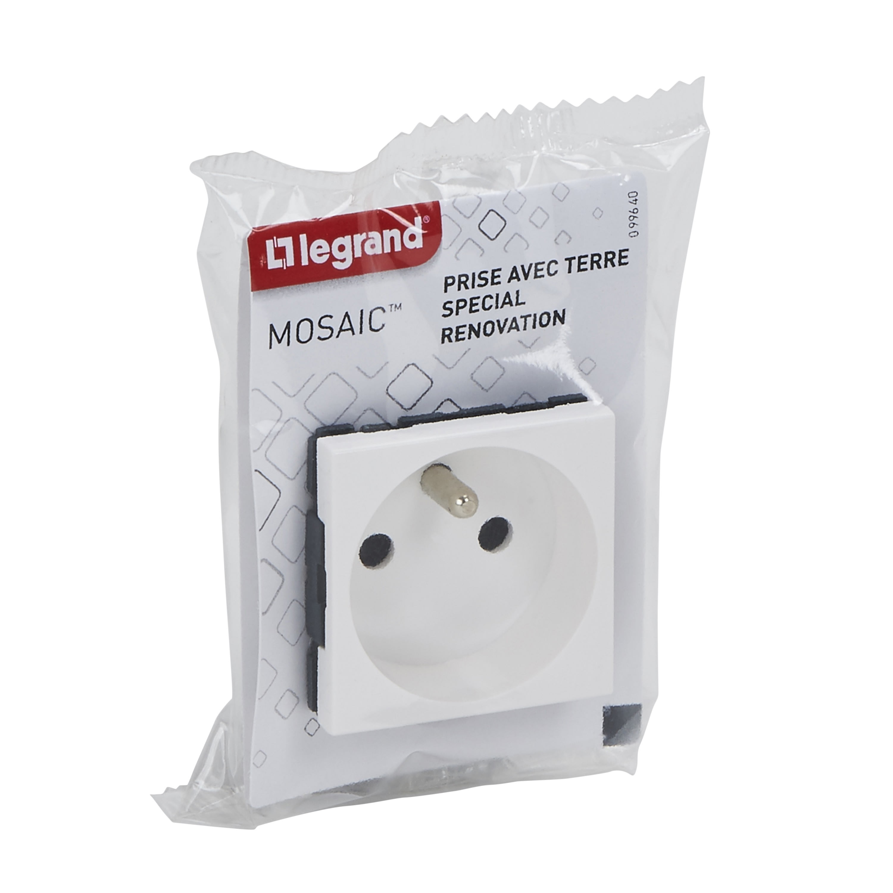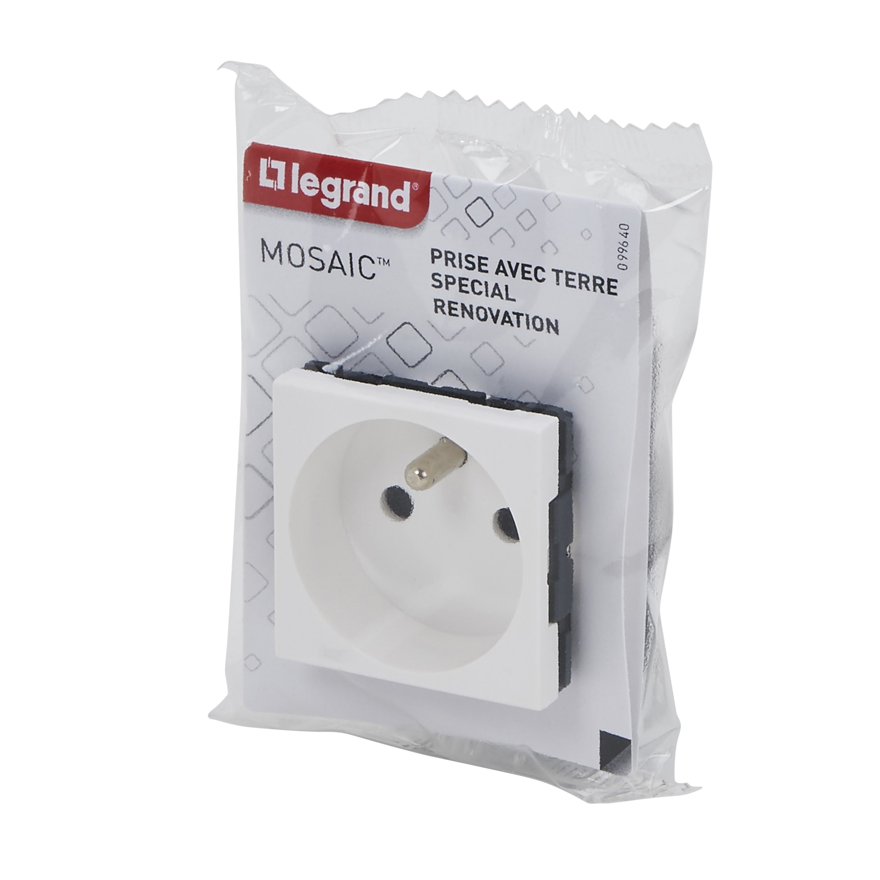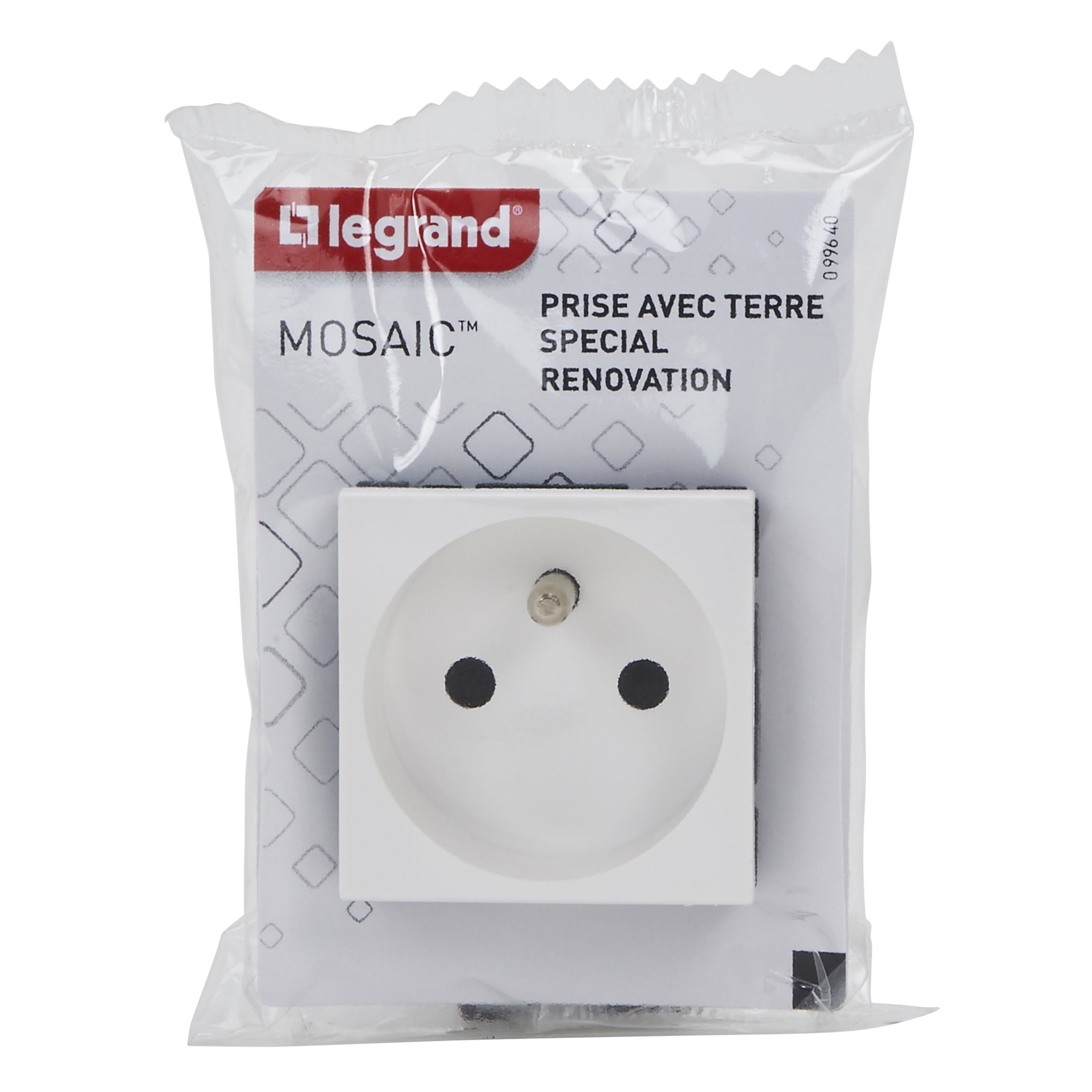 Legrand - Prise de courant avec terre spéciale rénovation Mosaic blanc - 2 modules - 099640