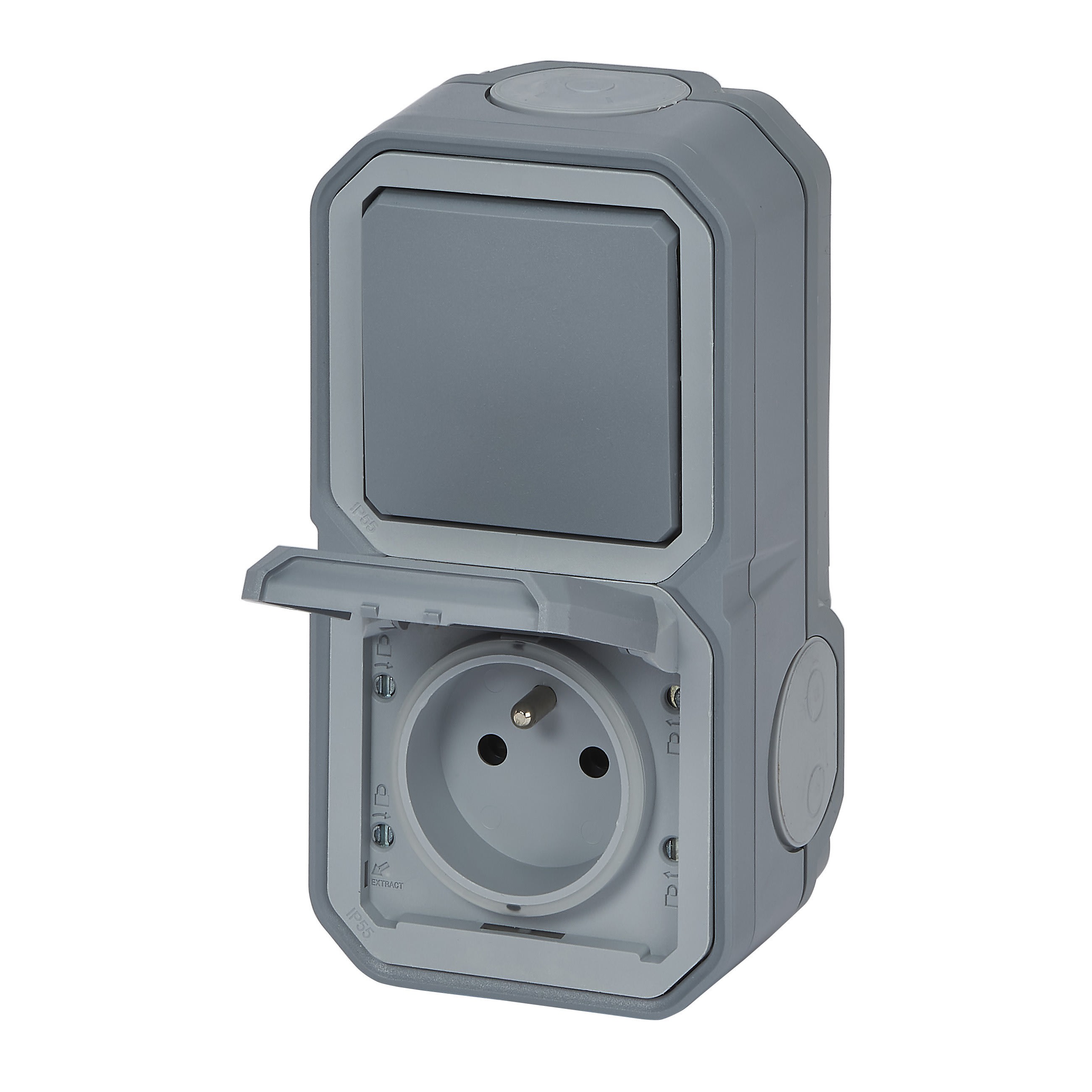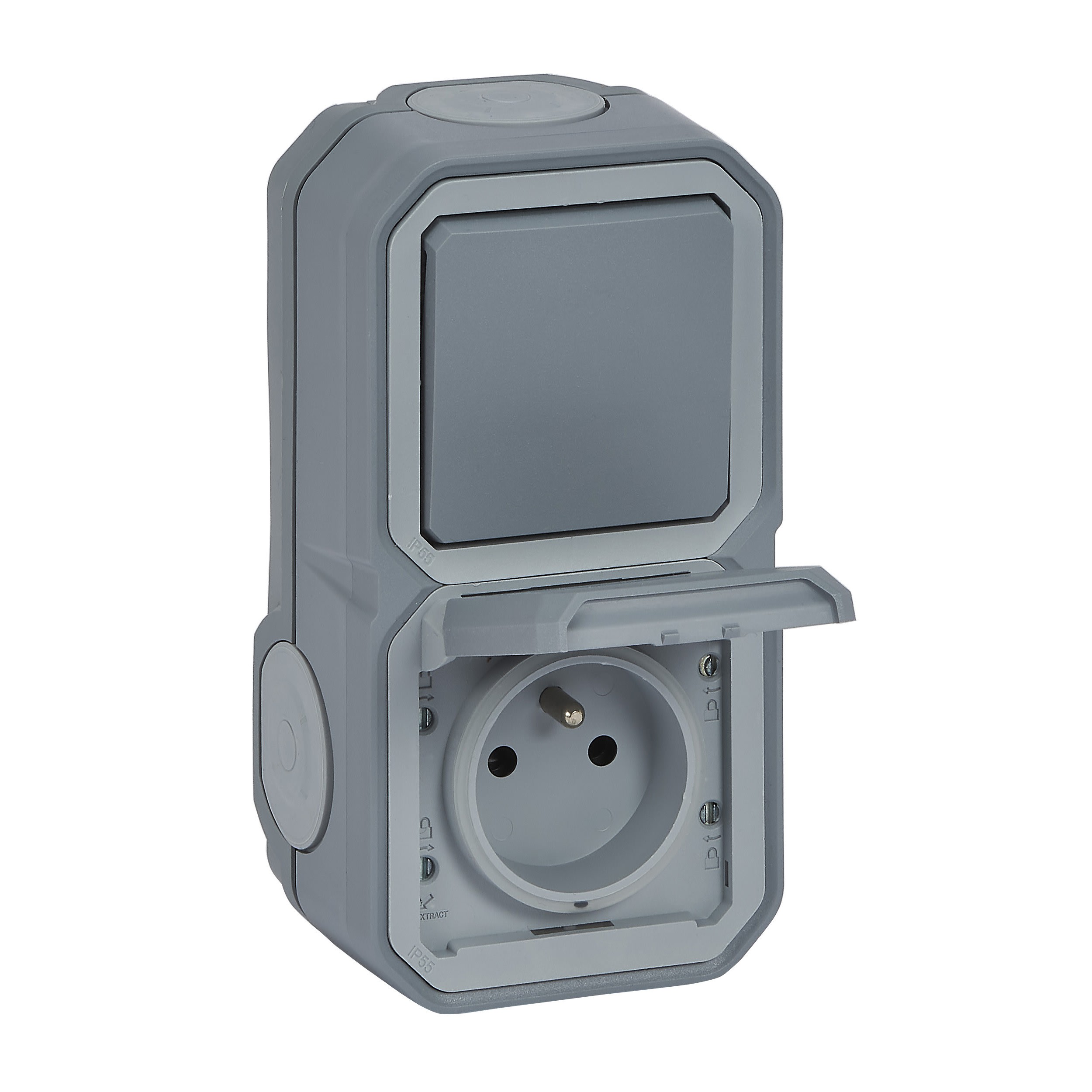 Legrand - Prise de courant avec va-et-vient vertical Plexo complet saillie - gris - 070012