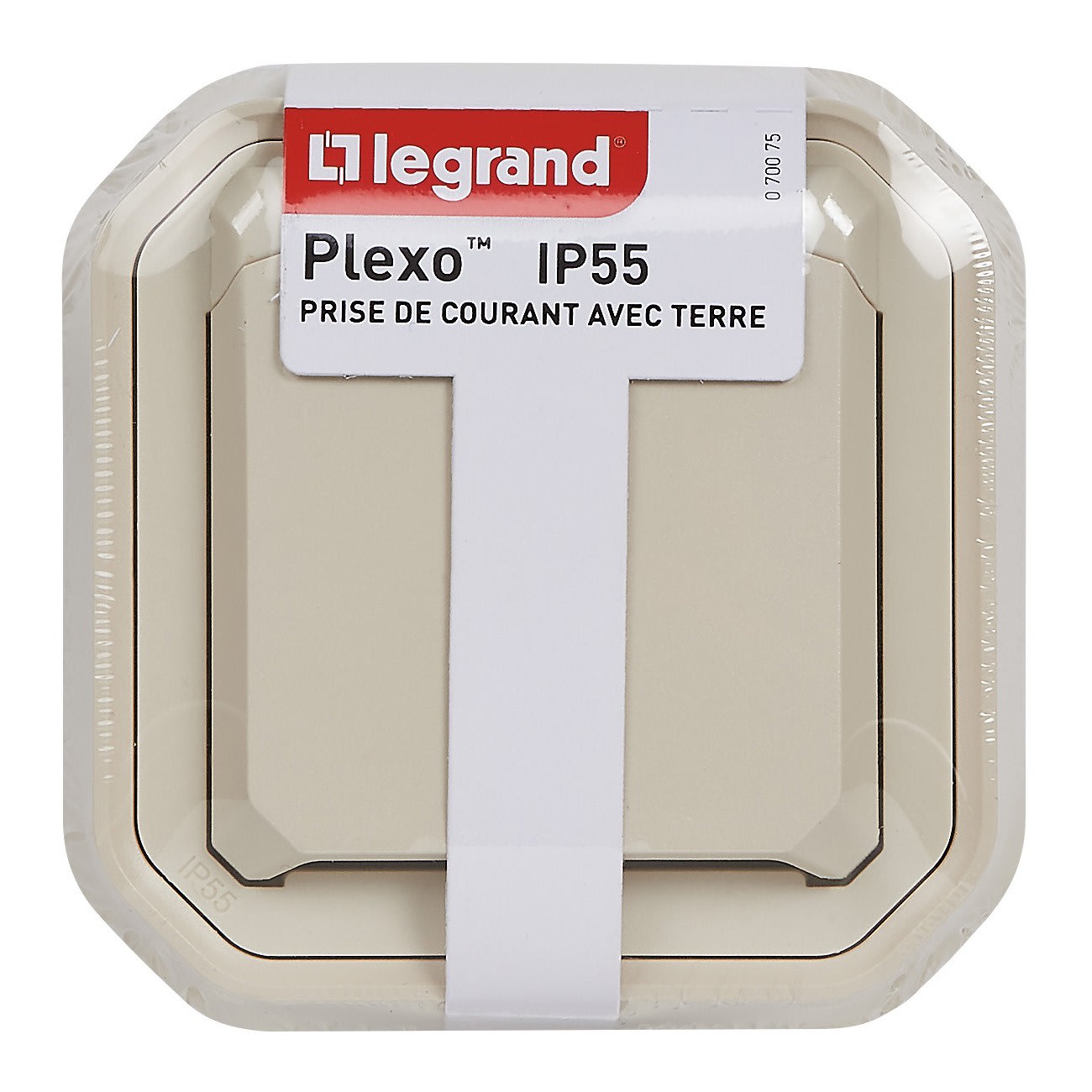 Legrand - Prise de courant avec volet Plexo complet encastré avec griffes - sable - 070075