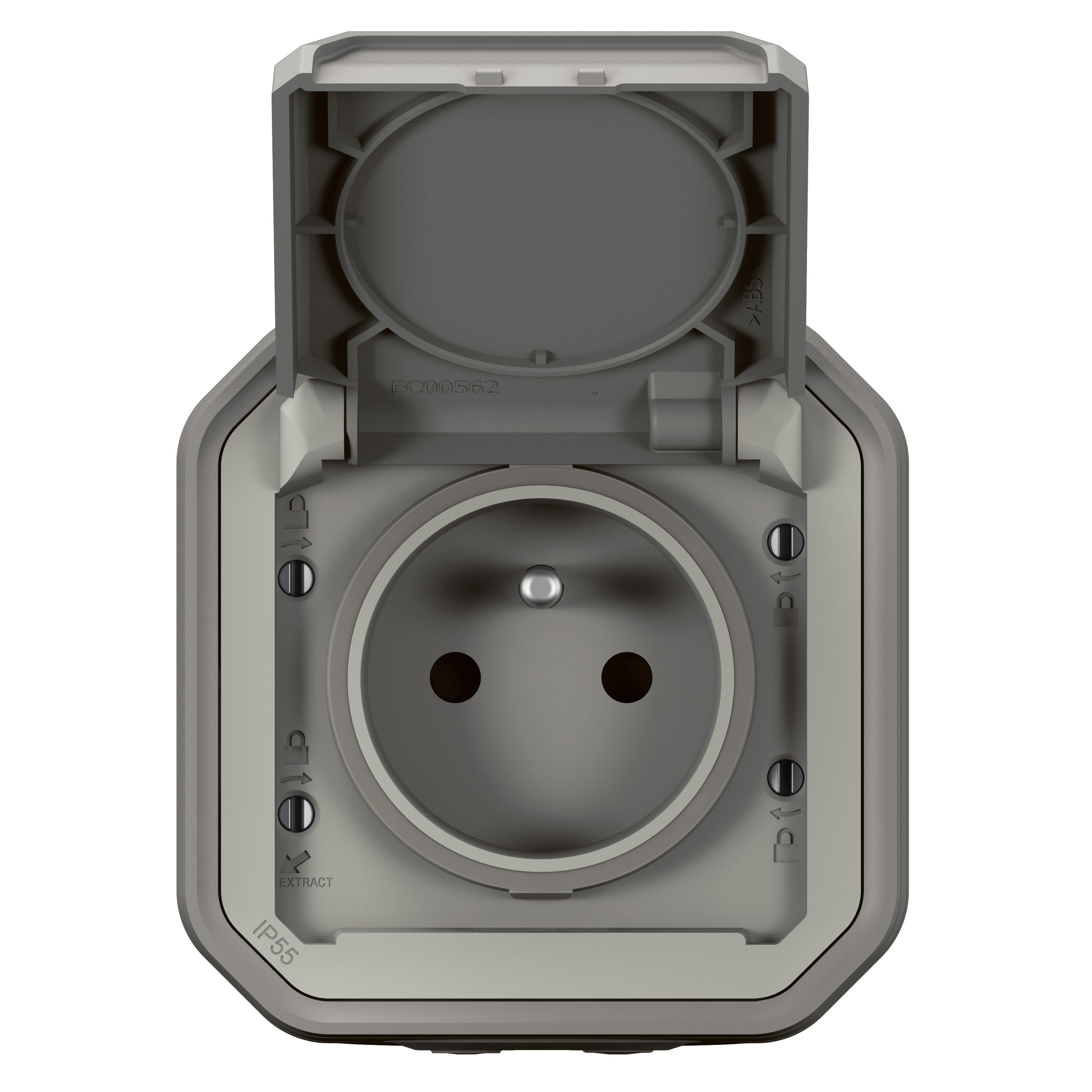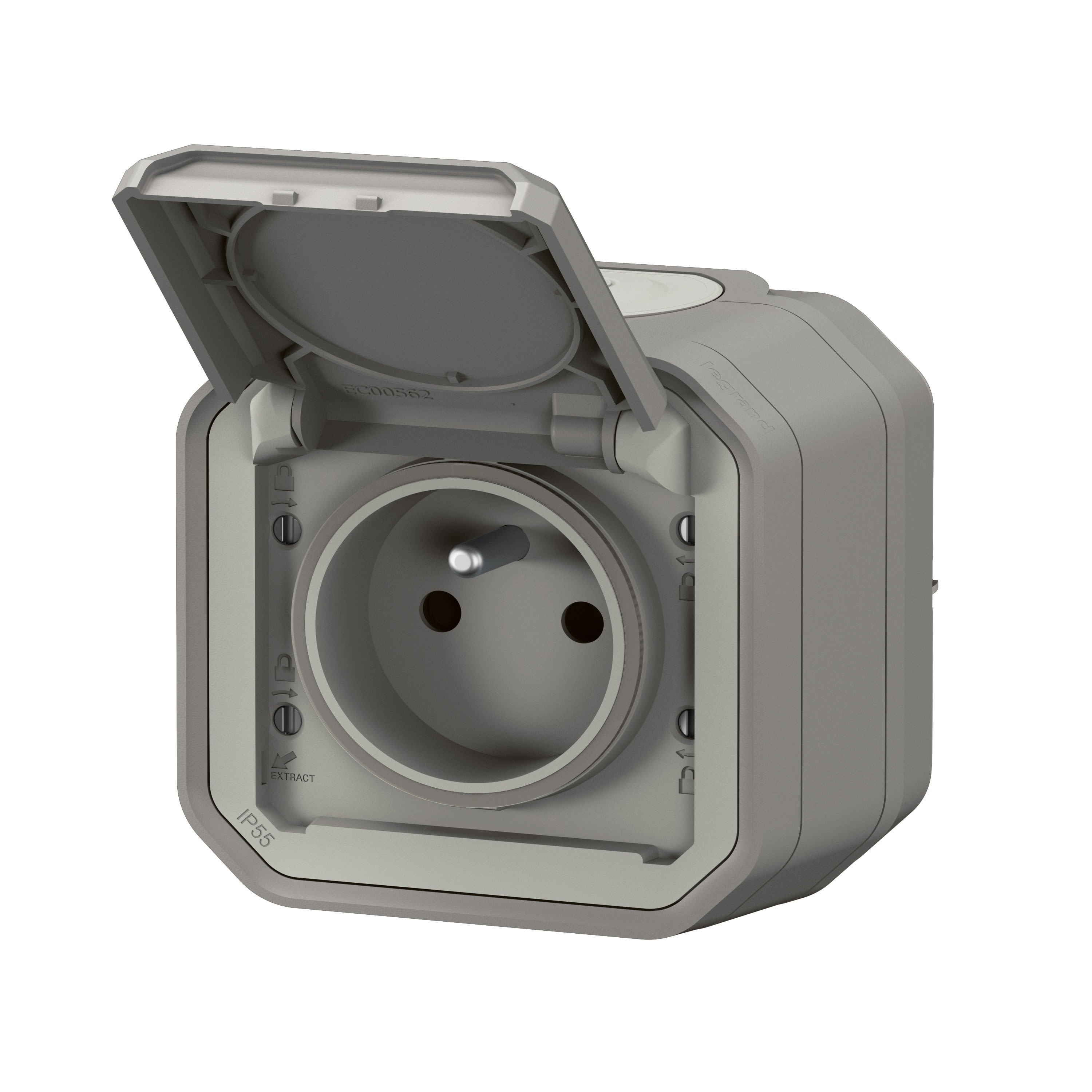 Legrand - Prise de courant avec volet Plexo complet saillie - gris brochable - 070004