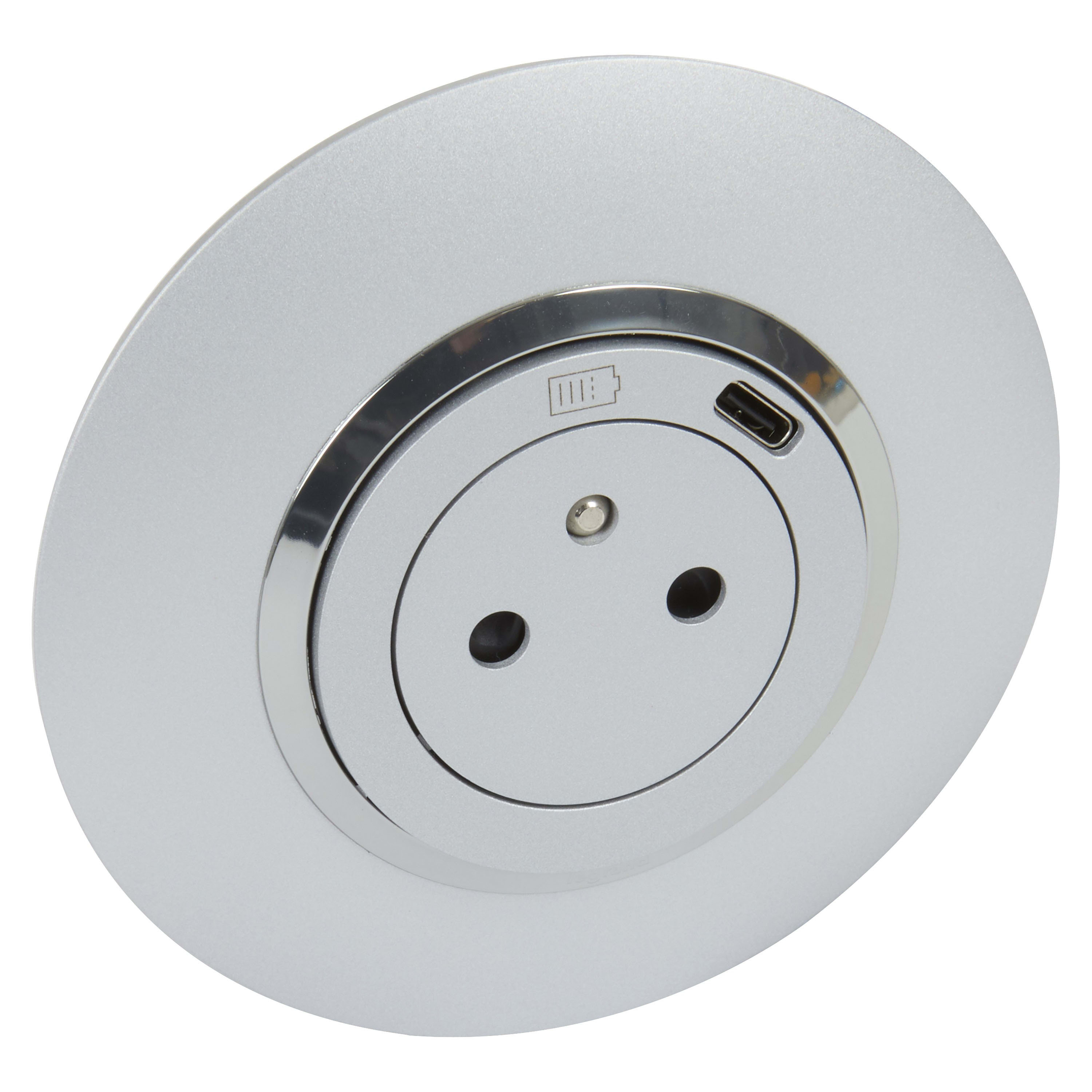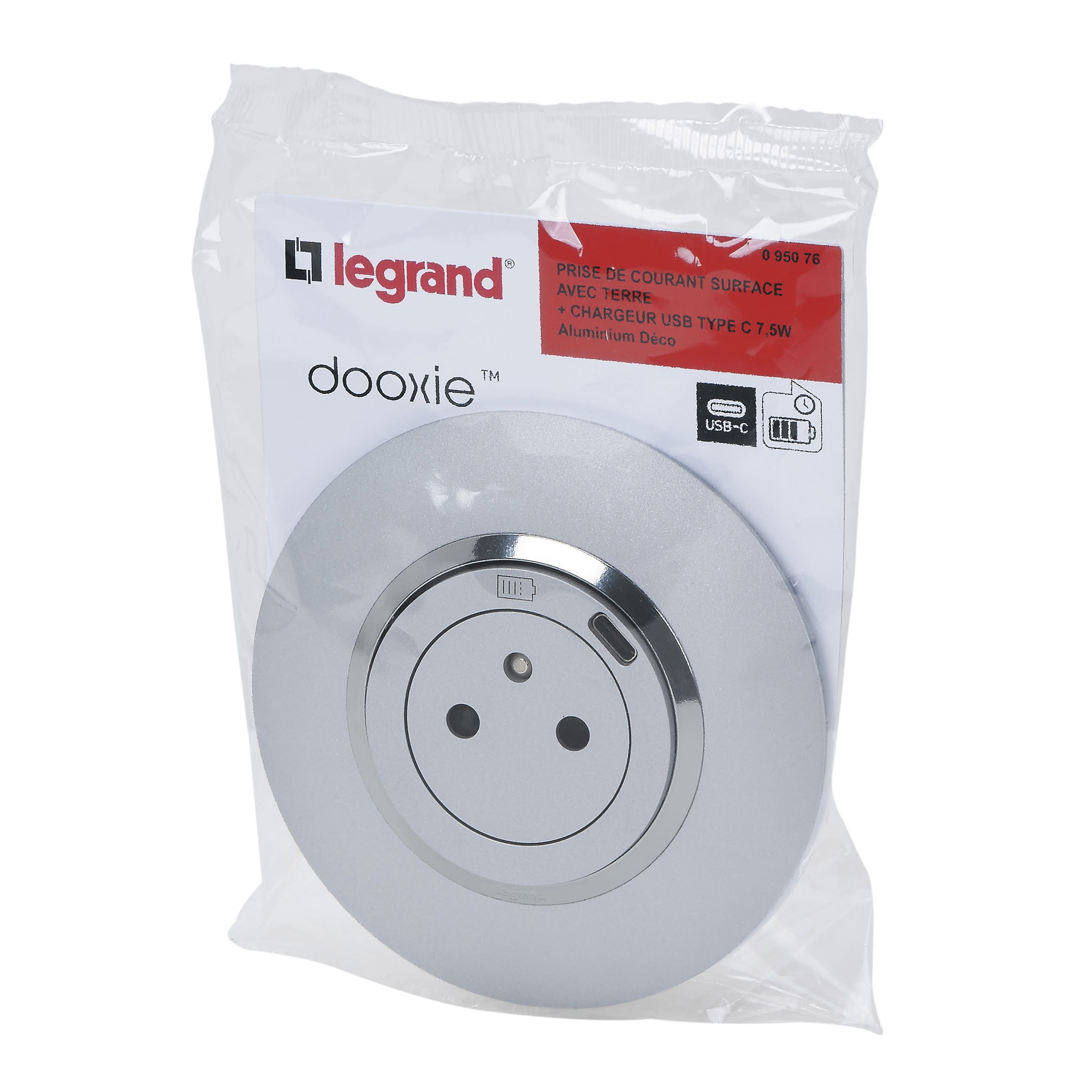 Legrand - Prise de courant Surface avec chargeur USB Type-C dooxie plaque ronde - alu - 095076