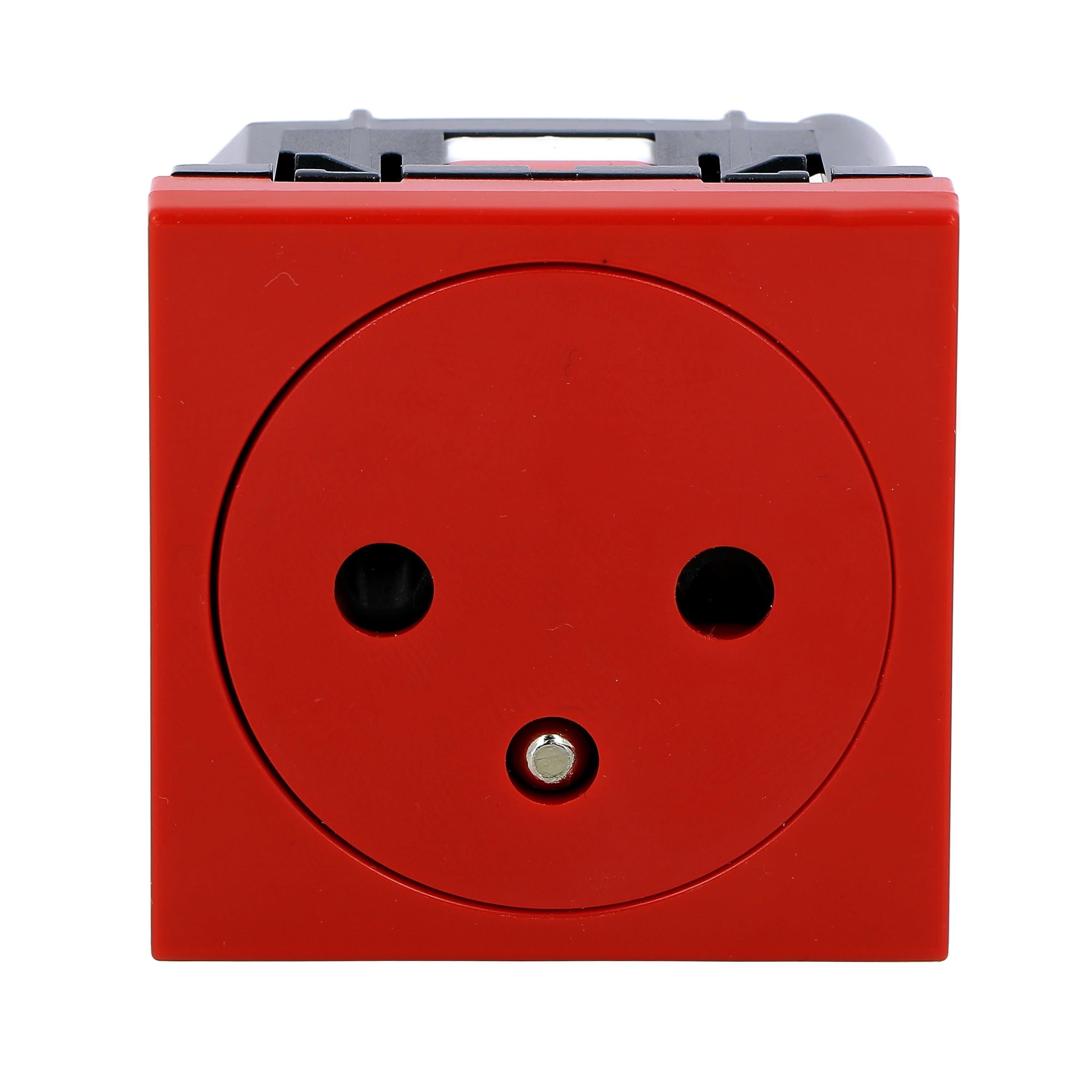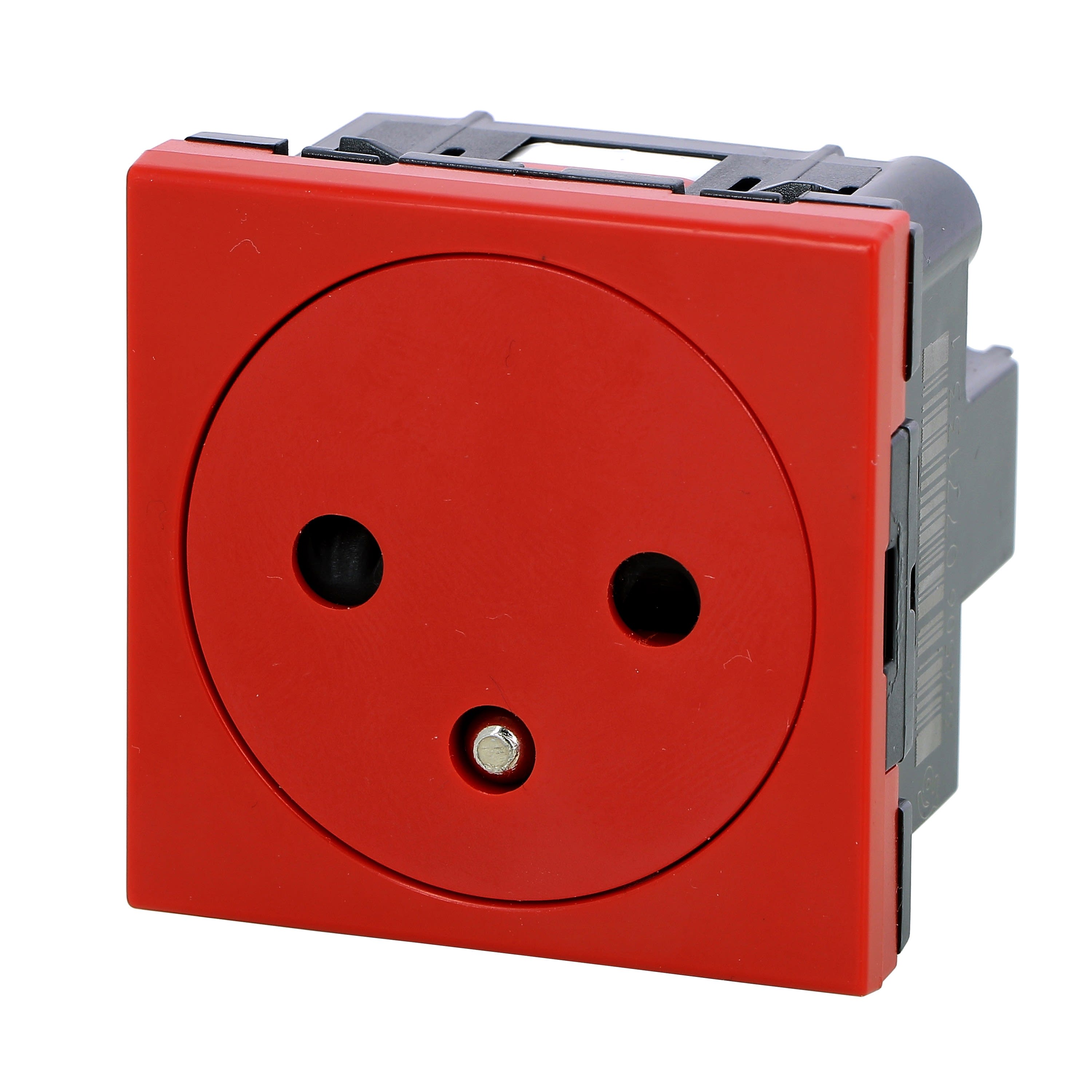 Prise de courant 2P+T Surface Mosaic 16A 230V - À équiper d'un support et d'une plaque Mosaic 2 modules Rouge antimicrobien. Contient des ions d'argent qui limitent le développement des bactéries en surface. Repérage des bornes facilitant le câblage Connexion par bornes automatiques à levier permettant la connexion rapide sans outil