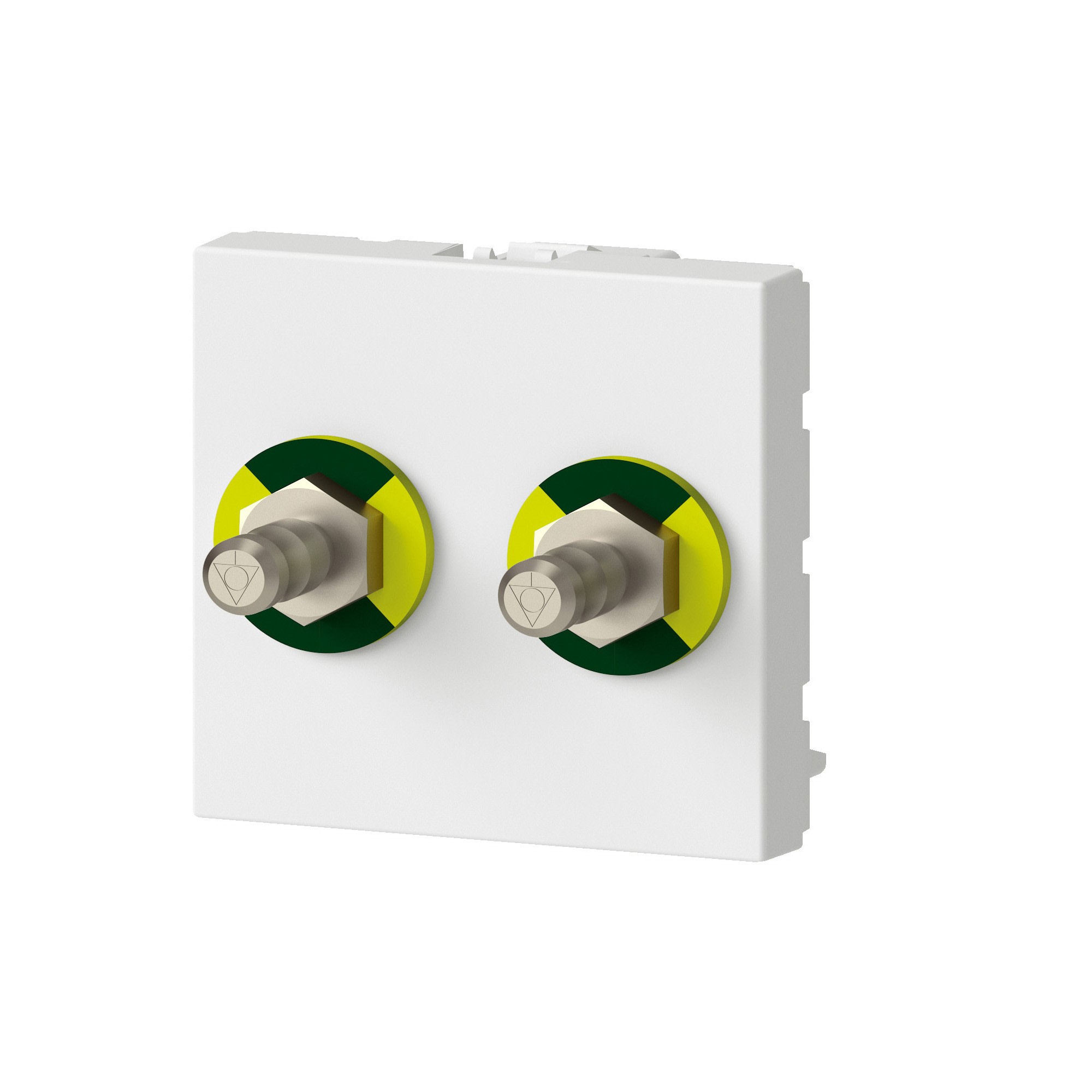 Prise équipotentielle Mosaic - A équiper d'un support et d'une plaque Mosaic Permet d'égaliser les potentiels de tous les éléments conducteurs et de toutes les masses, et de limiter la tension de contact à une valeur non dangereuse pour les personnes 2 modules Blanc antimicrobien contenant un composé argent qui s'oppose à la croissance des bactéries en surface Conforme à la norme DIN 42801 et IEC 60364-7-710