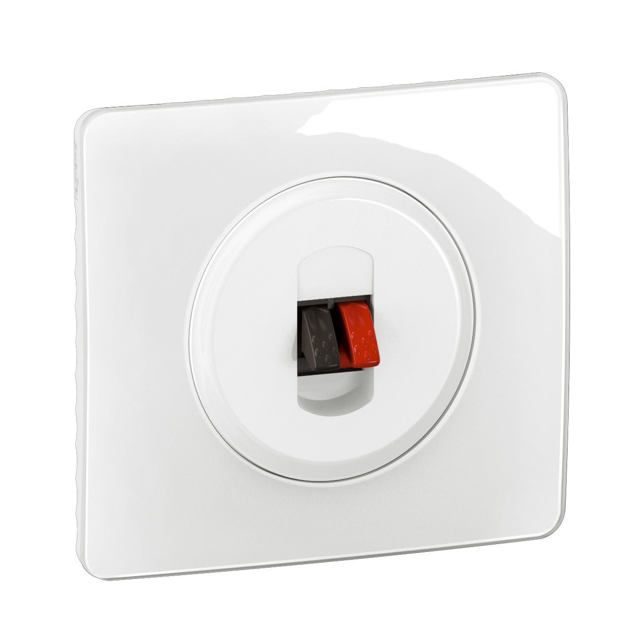 Permet la connexion d'enceintes Raccordement jusqu'à 4mm² Poussette automatique repérée (Noir/Rouge) Possibilité de réaliser une prise double en associant 2 mécanismes Bornes à vis