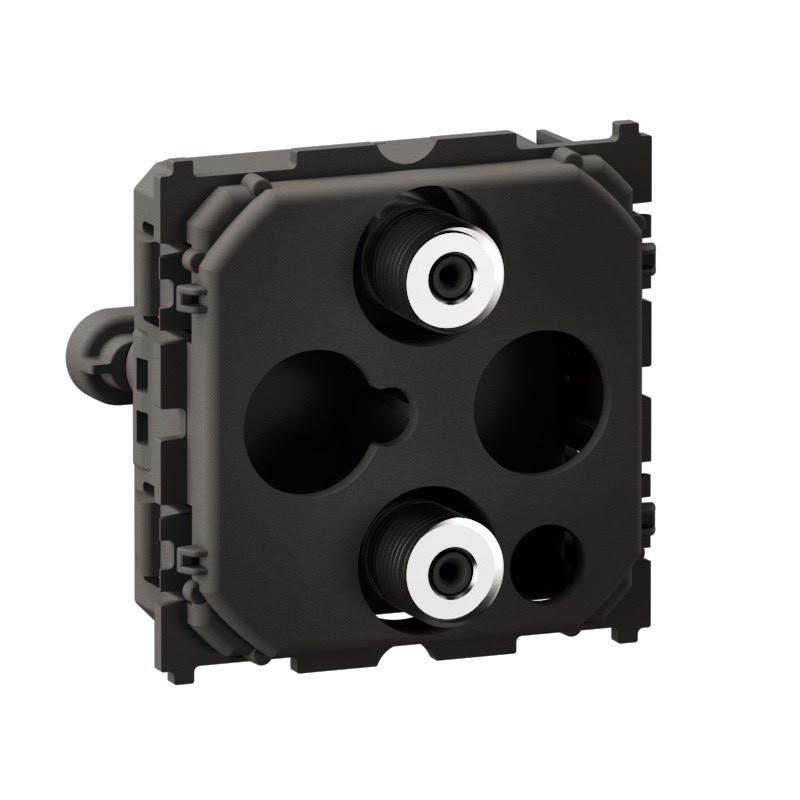Étoile blindée Classe A pour réseau câblé AFORM Câblage avec câble coaxial et reçoit les différentes fiches du marché Réception télévision et internet multimédia 5-862 MHz - Arrivée de câble unique Compatible avec télévision Ultra Haute Définition Peut être installée en encastré (dans boîte d'encastrement) ou en saillie (sur cadre saillie)