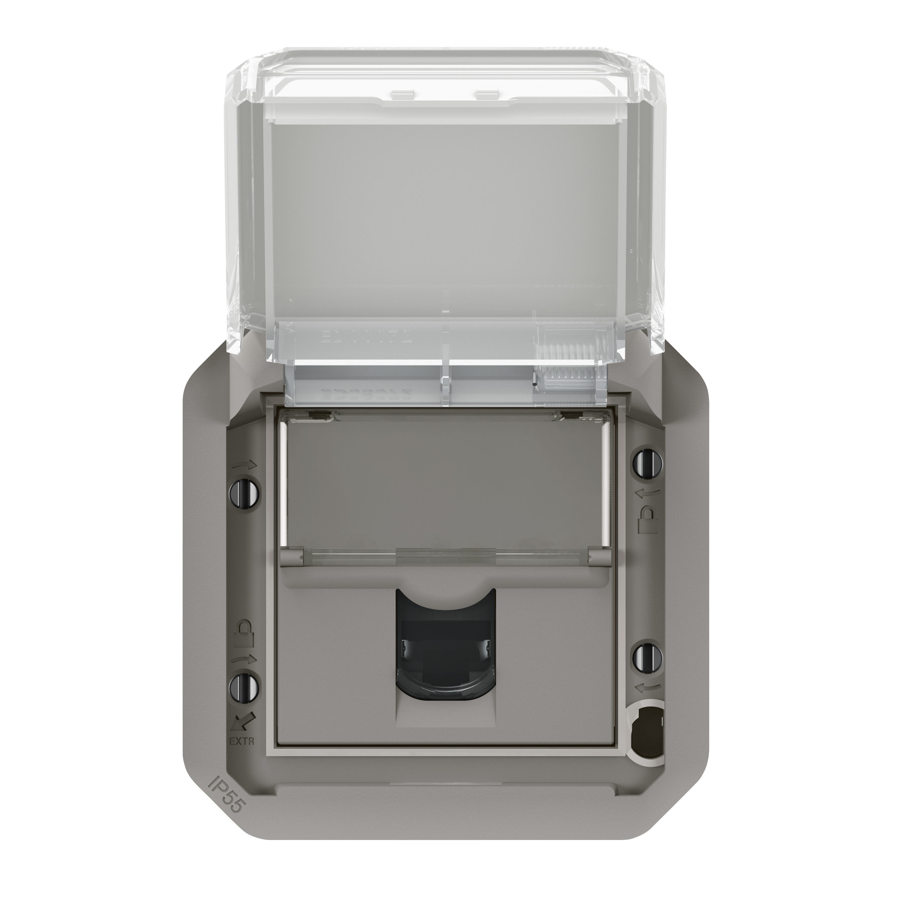 RJ45 catégorie6 avec un débit jusqu'à 1 GigaBit par seconde : permet de télécharger un fichier de 1 GigaBytes en 8 secondes Produit à compléter soit avec un boitier saillie, soit avec un support encastré IP55 : protégé contre les poussières et les projections d'eau à la lance de toutes directions IK07 : résistance à un choc de 2 joules Type de blindage : FTP