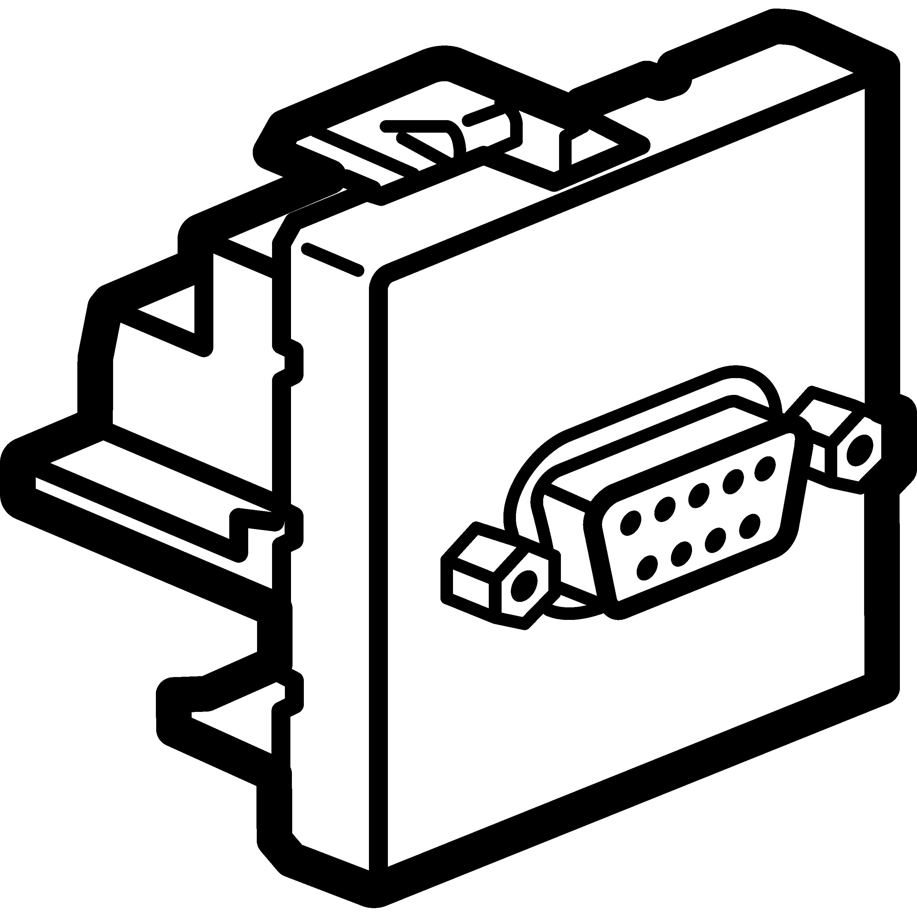 Prise SUB D 9 contacts Mosaic 2 modules avec connecteur à visser pour liaison série typeRS232 - blanc RAL9003 finition brillante - à équiper d'un support et d'une plaque Mosaic - peut être installé en encastré ou en saillie