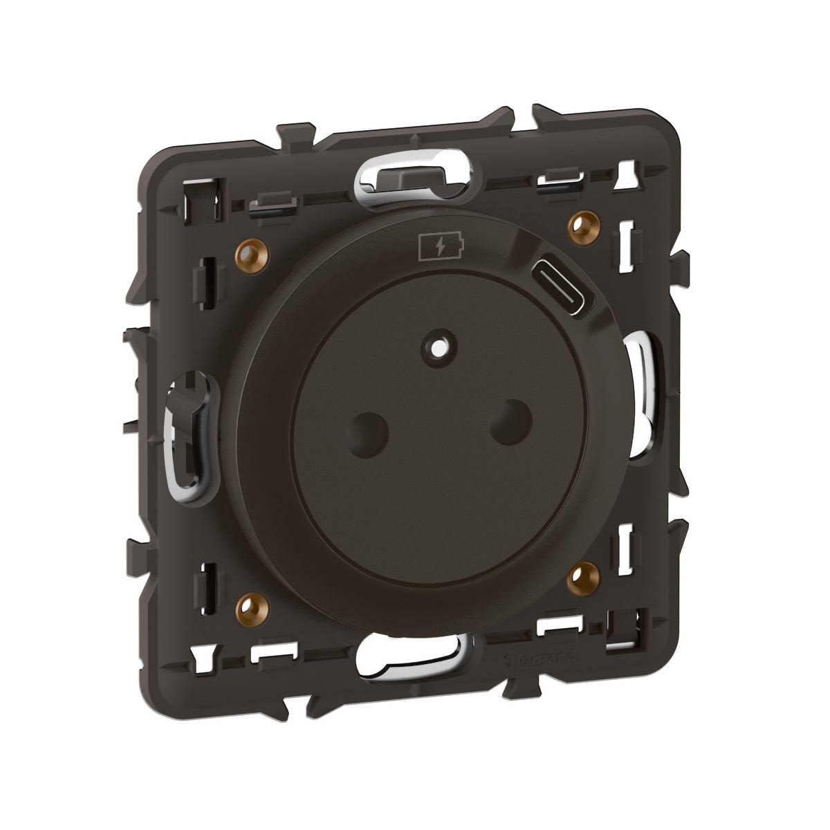 Prise Surface avec prise USB Type-C Céliane intégré à l'avant, avec support et enjoliveur Noir - bornes automatiques- Auto-protégé contre les surtensions - à équiper d'une plaque de finition Céliane