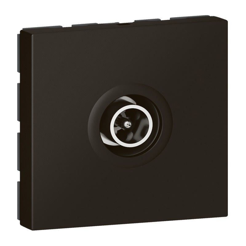 Prise TV Ø9,52mm mâle étoile blindée Classe A Mosaic pour réception des signaux de la TNT dans une installation individuelle - A équiper d'un support et d'une plaque Mosaic 2 modules - Noir mat RAL9017 Compatible TV UHD (Ultra Haute Définition) Tenue du câble optimisée - Dépasse les exigences de la norme EN 50083-4 Conforme au norme EN 50083 et à la Directive Européenne EM 50083-2