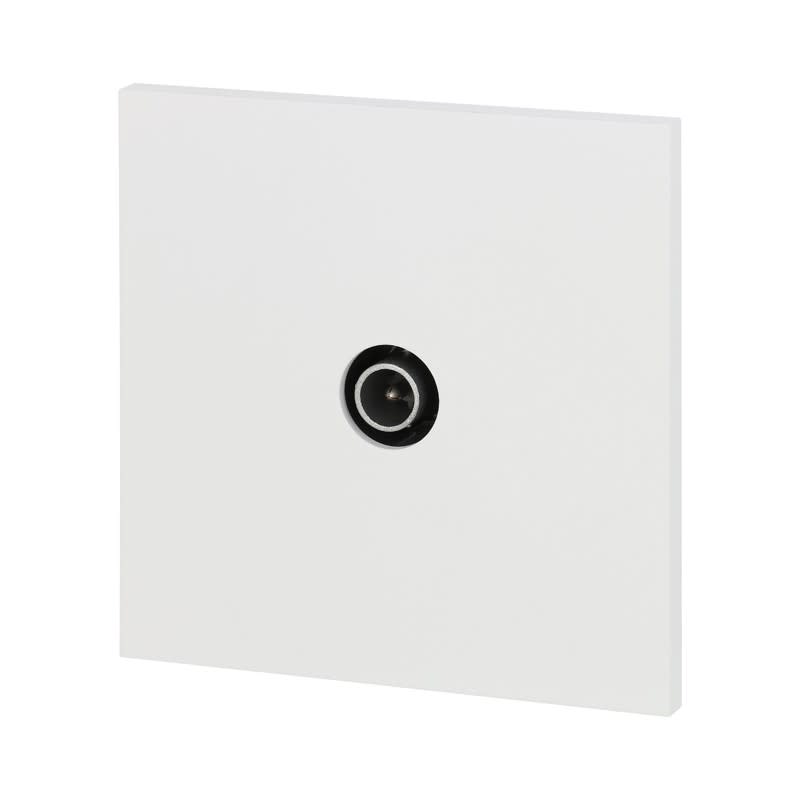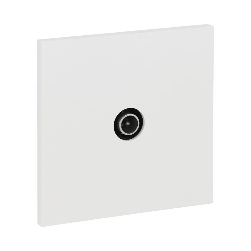 Prise TV simple Art d'Arnould Univers Epure Blanc satin Dimensions grand carrée 80x80mm Se monte dans boîte d'encastrement 1 poste