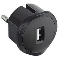 Legrand - Prise USB 5V 1,5A maximum avec fiche 2P 10A et encombrement réduit - noir - 050681