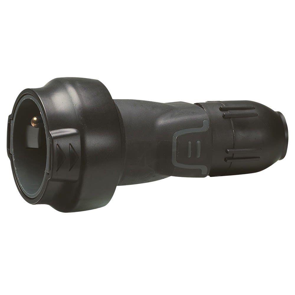 Prolongateur caoutchouc 2P+T - 16A IK08 à verrouillage pour assurer l'IP44 10A -16A : Ø4,8mm - Etiquette avec Gencod Tenue optimale à la traction du serre-câble : 30kg en 2,5mm² - Câble H07 RNF 3G 2,5mm² maximum Système de verrouillage assurant une tenue à l'arrachement supérieure à 20 kg - compatible avec les fiches mâles 2P+T