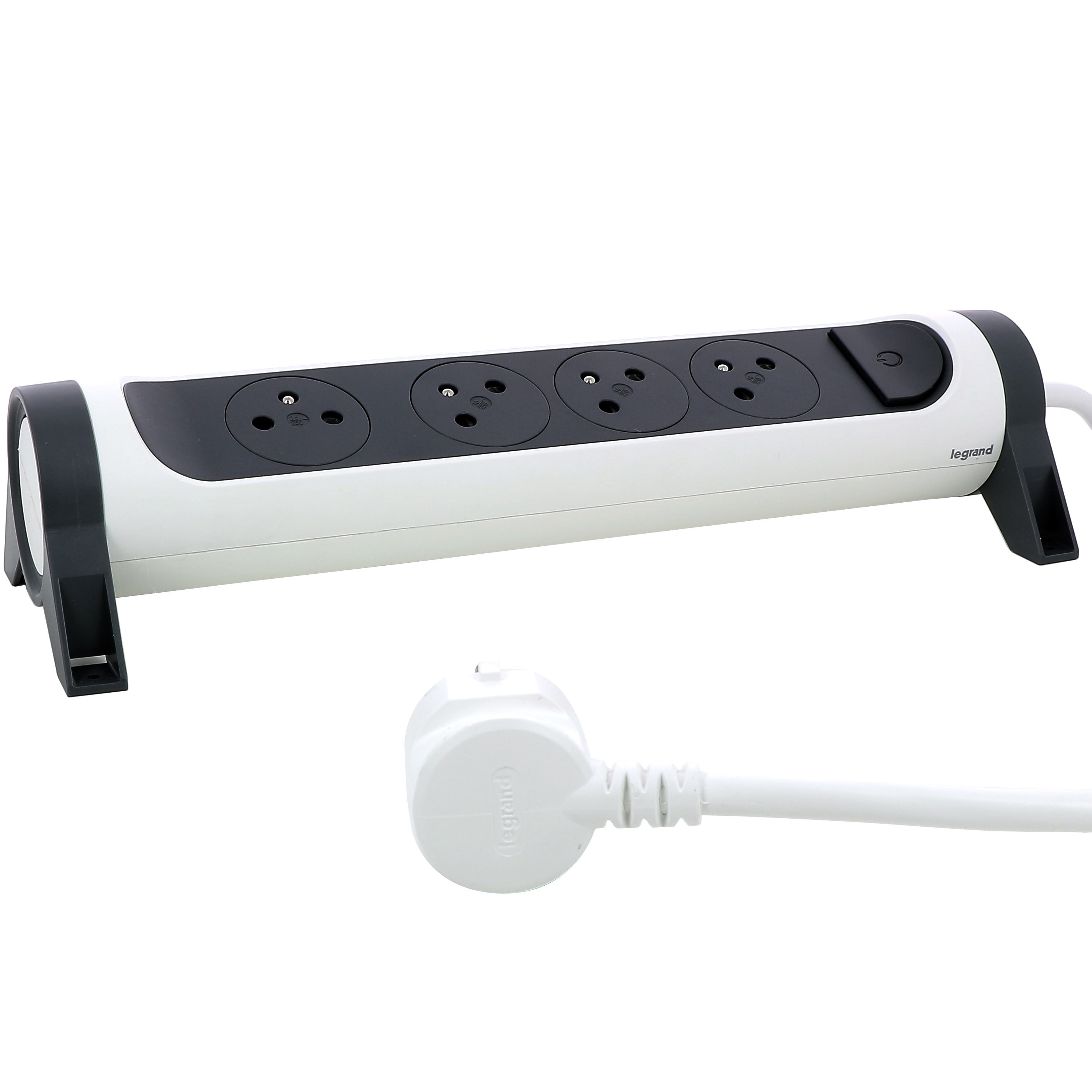 Legrand - Rallonge 4x2P+T Surface avec interrupteur et cordon 1,5m 3G 1mm² - blanc/gris - 049446