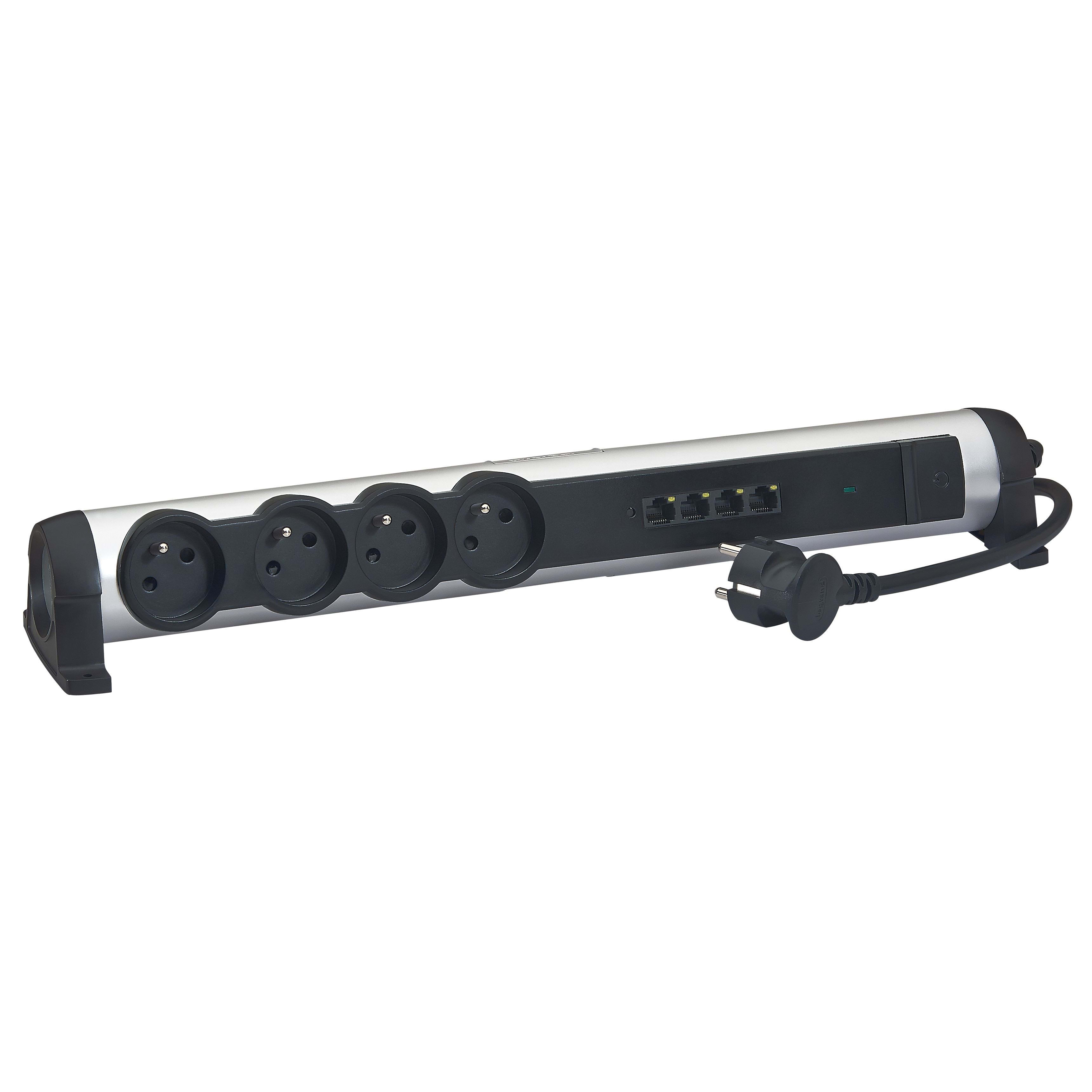 Legrand - Rallonge 4x2P+T + switch 4 prise RJ45 + parafoudre - Aluminium - 050395