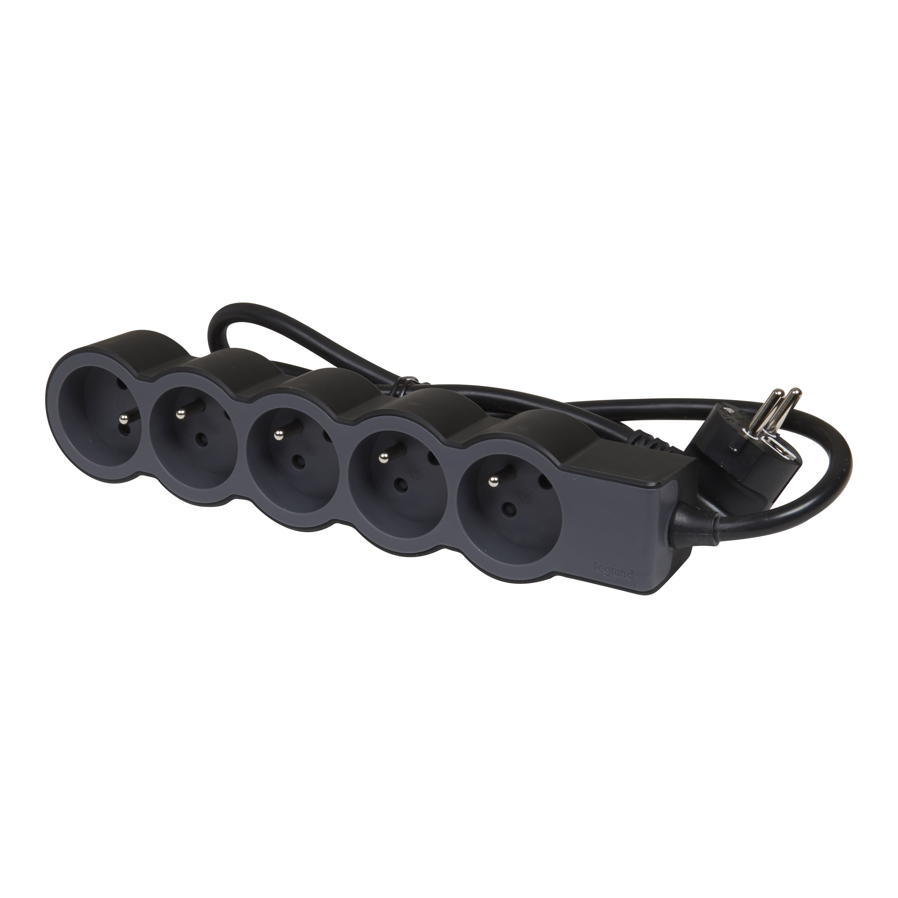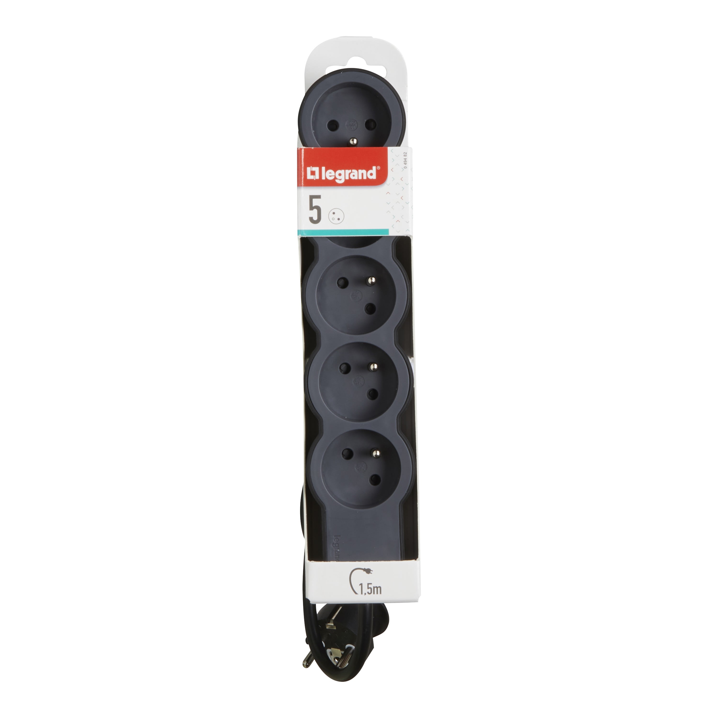 Legrand - Rallonge 5x2P+T avec cordon 1,5m 3G 1mm² - noir/gris foncé - 049482
