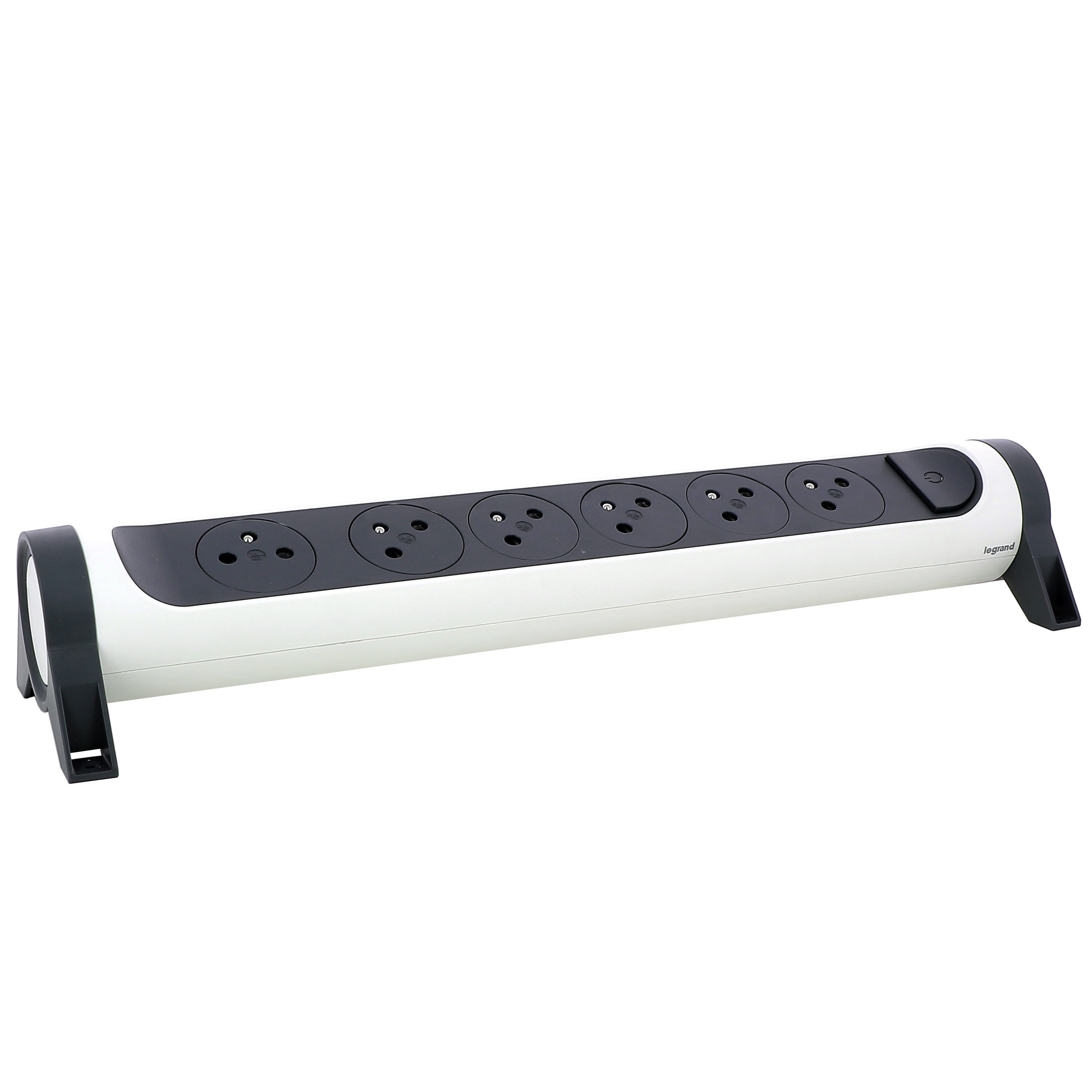 Legrand - Rallonge 6x2P+T Surface avec interrupteur sans cordon - blanc/gris foncé - 049468