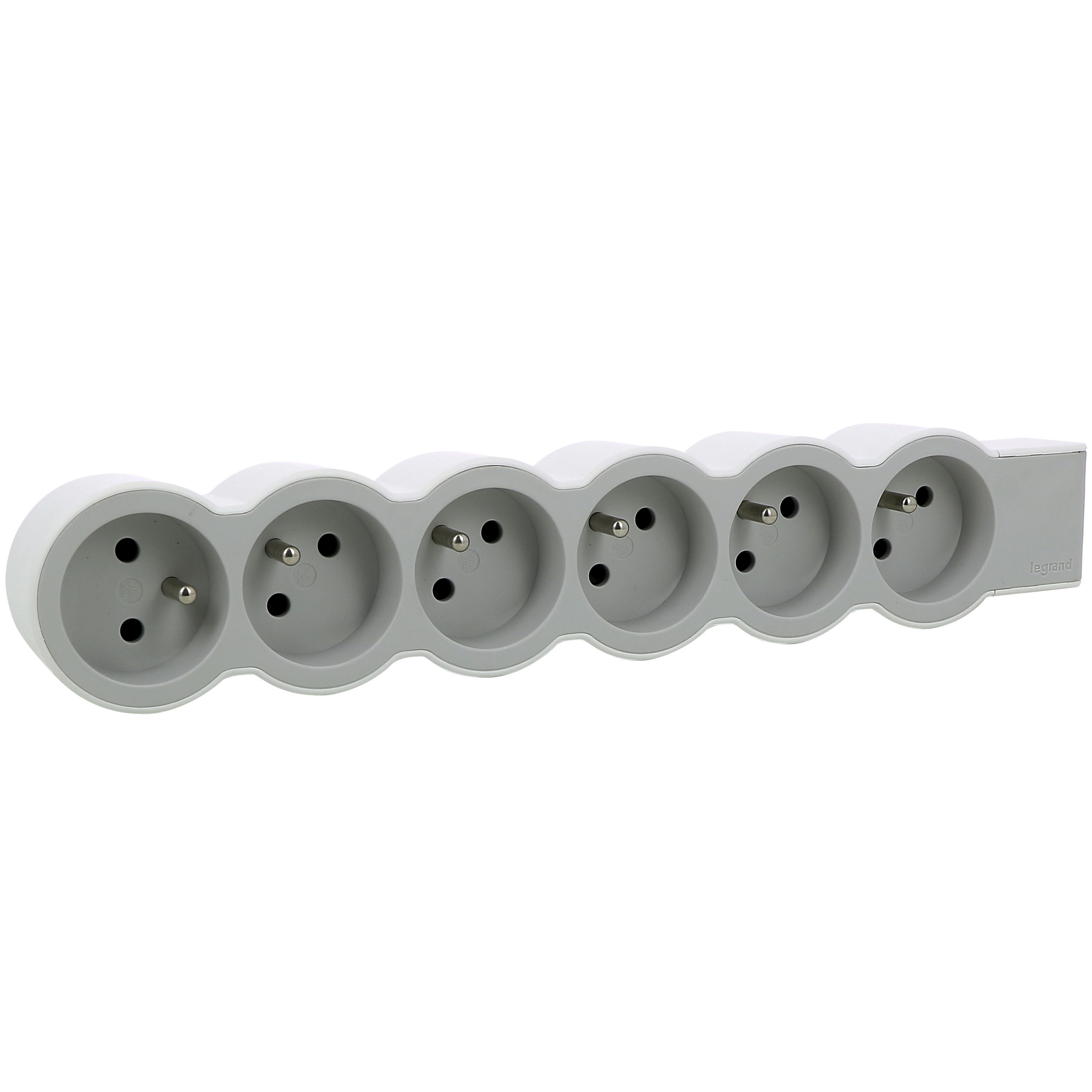 Legrand - Rallonge extra-plate 6x2P+T à câbler - blanc/gris clair - 049499