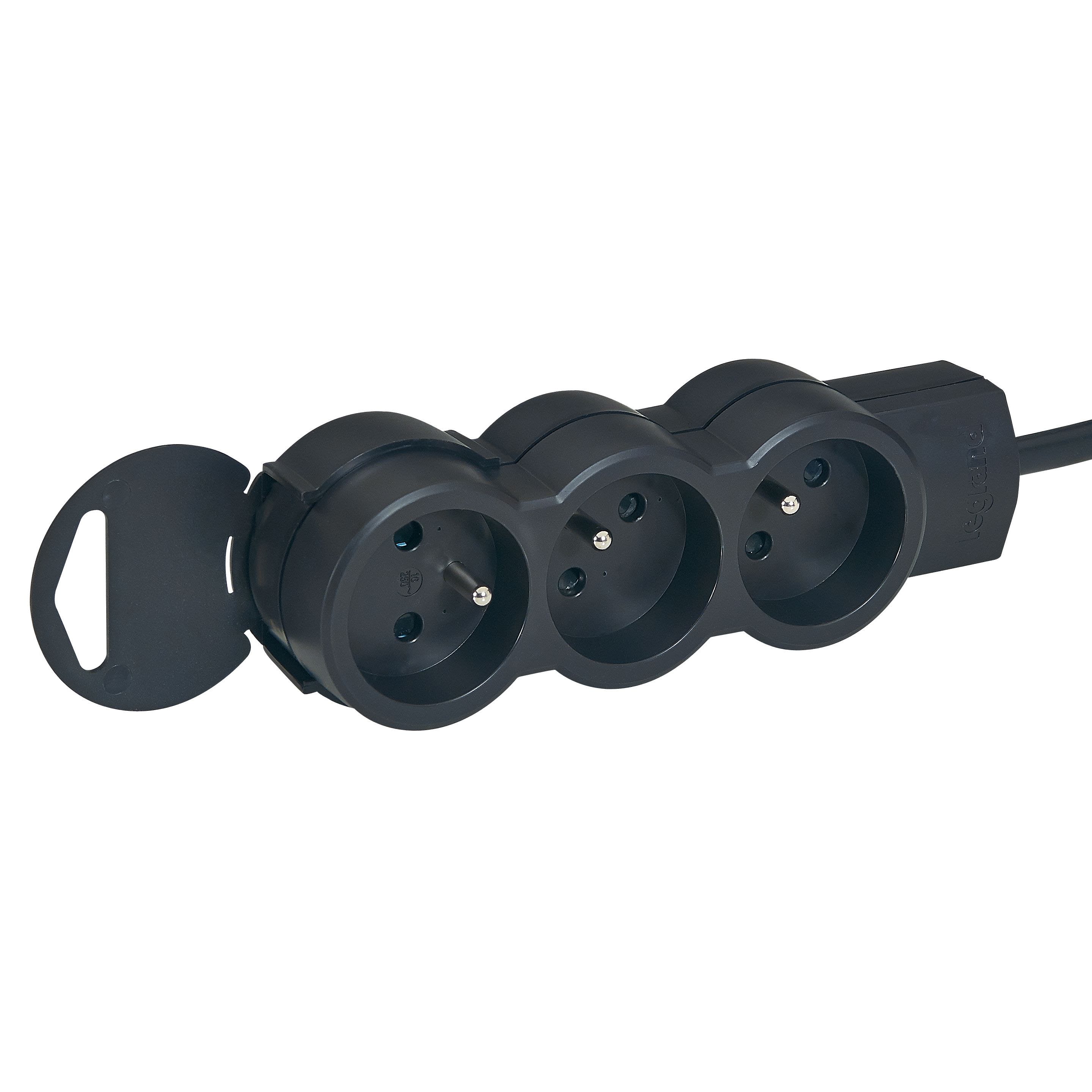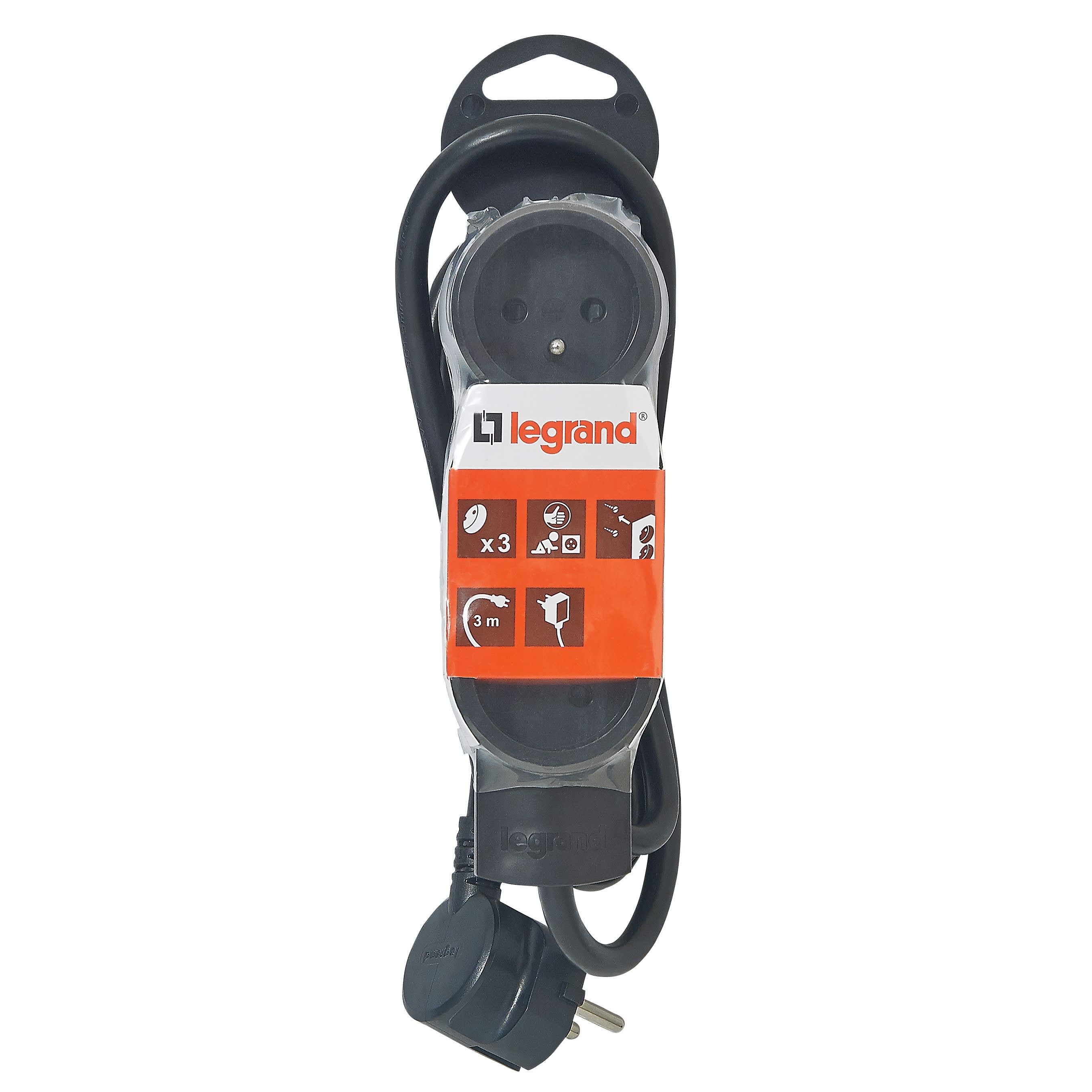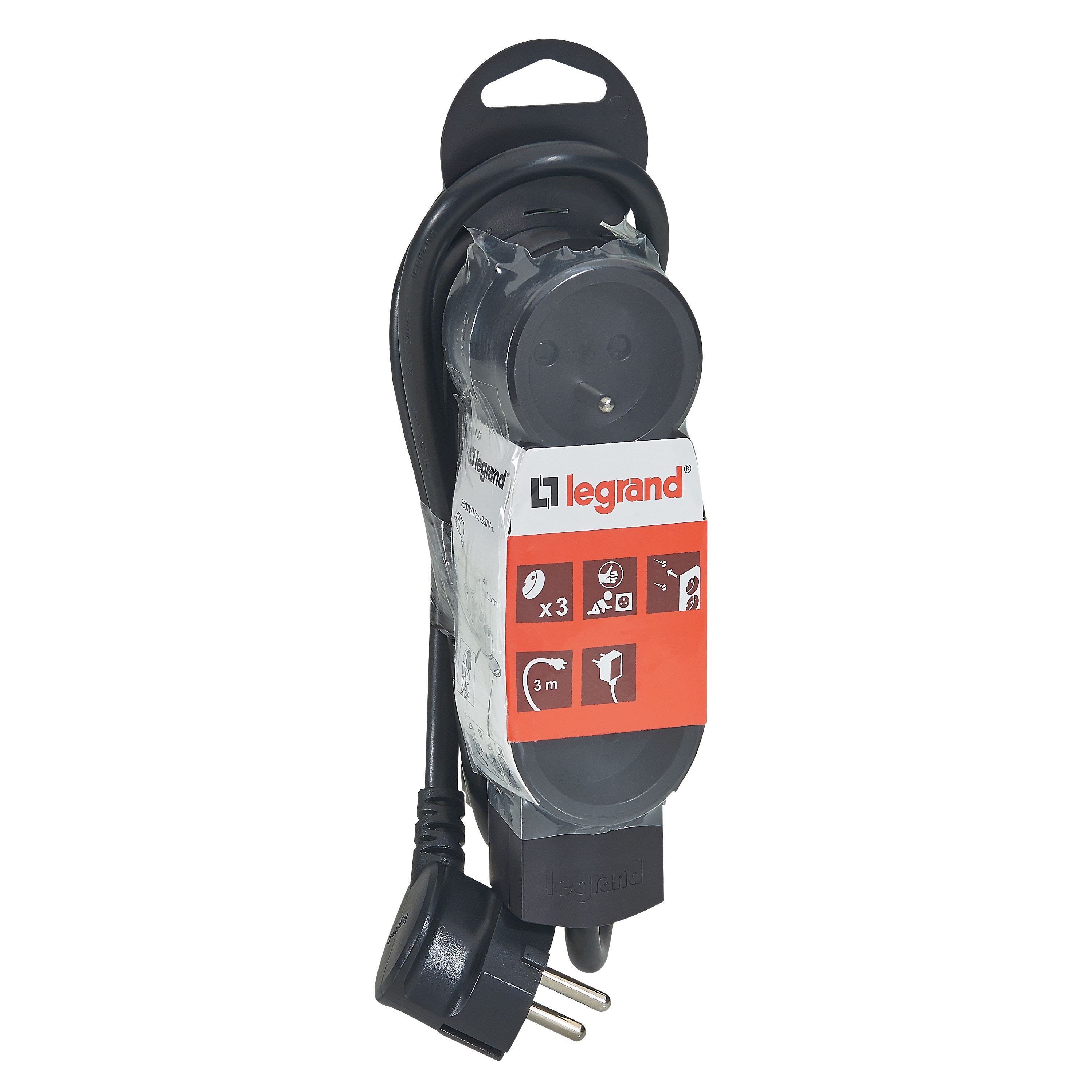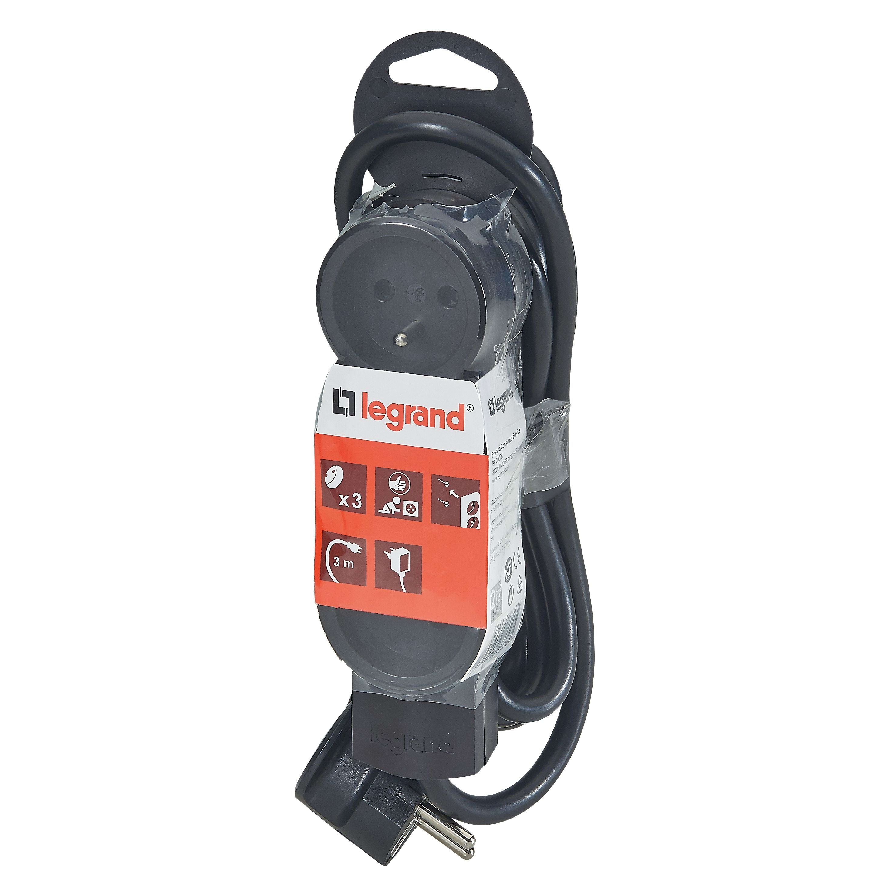 Legrand - Rallonge multiprise 3 prises de courant 2P+T 16A 230V avec cordon 3m - noir - 050035