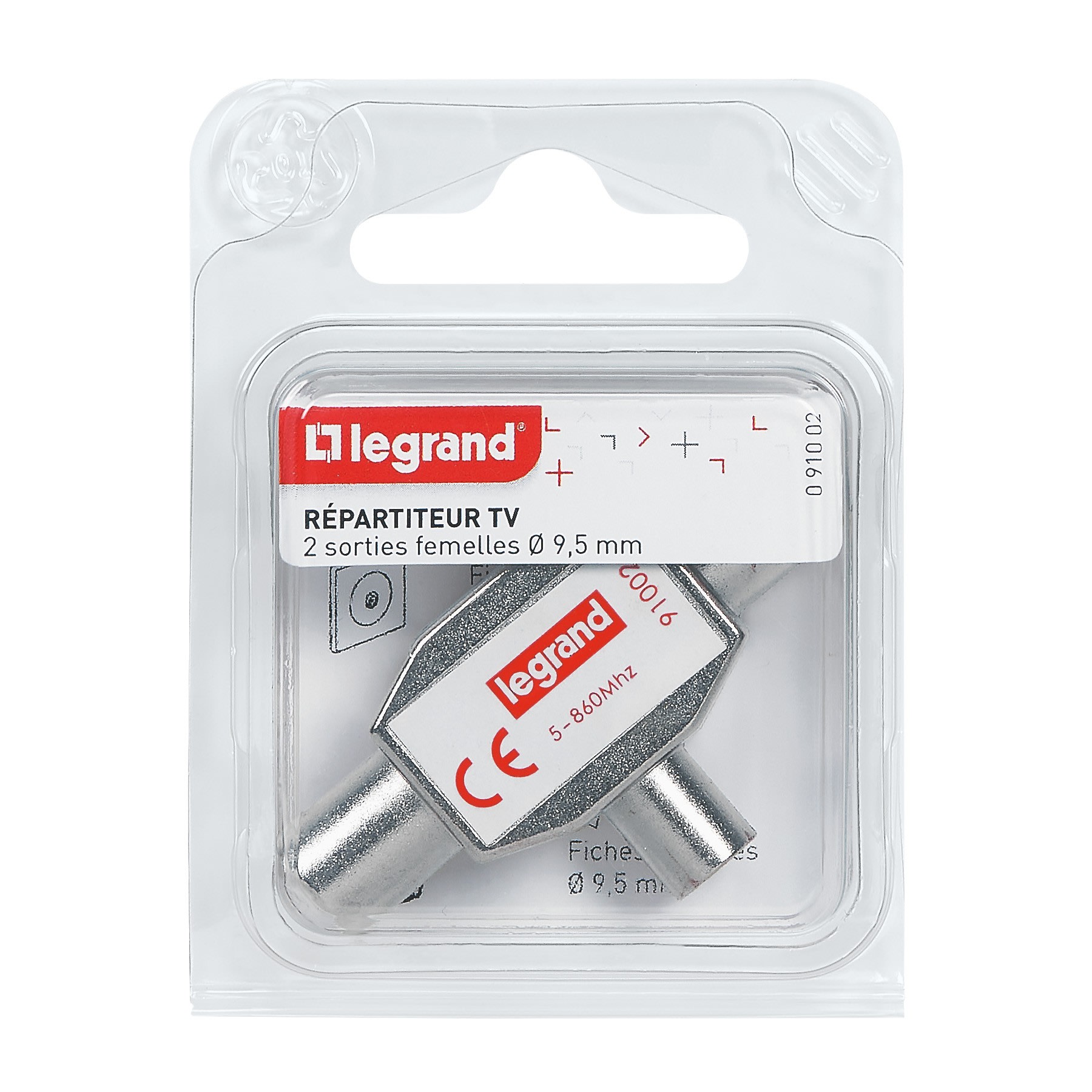 Legrand - Répartiteur télévision blindé 1 entrée mâle 2 sorties femelles Ø9,52mm - 091002