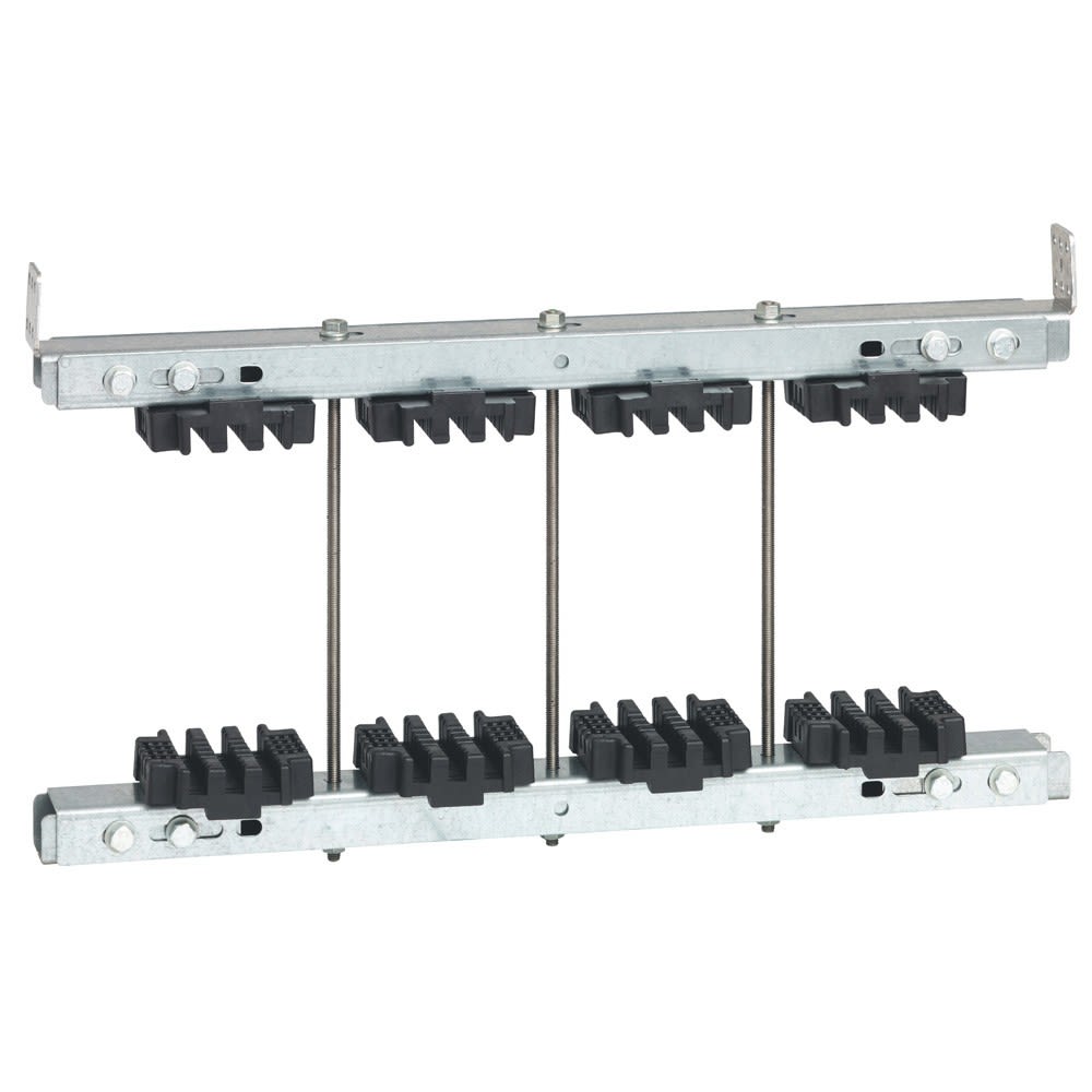 Support fixe isolant 4P renforcé pour jeu de barres jusqu'à 6300A Maintient les barres cuivre plates jusqu'à 3 barres de 200x10mm par pôle Pour armoires XL³4000 et XL³6300