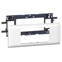 Support pour montage de mécanisme Mosaic 4 modules sur goulotte DLP monobloc Dimensions plaque : - largueur 67,5mm - longueur 165,2mm 4 modules Support gris Plaque de finition blanc
