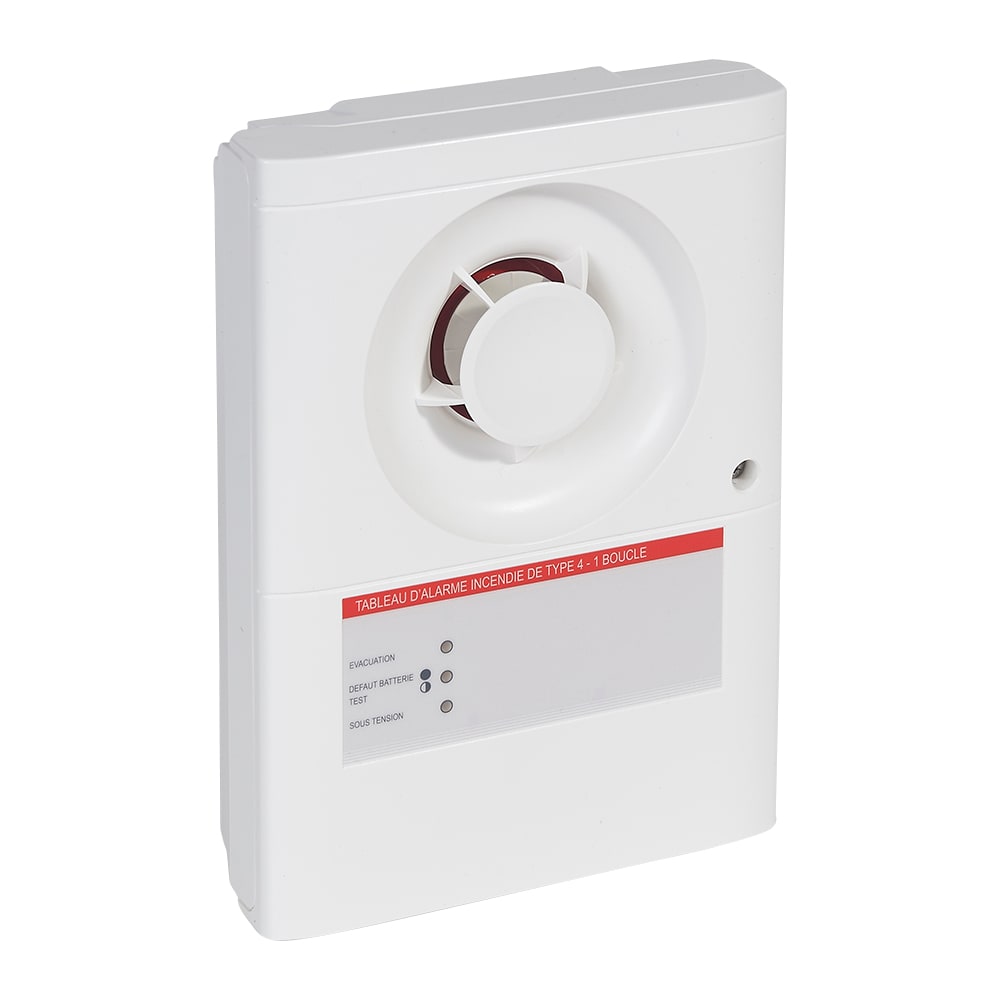 Tableau d'alarme incendie de type 4 avec alimentation secteur et 1 boucle pour déclencheurs manuels - Classe II - IK07 Dimensions : Hauteur 230mm x Largeur 165mm x Profondeur 48mm - Alimentation : 230V - 50Hz/60Hz secourue par 2 batteries Ni-Mh référence 040755 (fournies) assurant une autonomie de 72h en veille et 5 minutes d’alarme Equipement :- une boucle pour déclencheurs manuels- un avertisseur sonore- un contact auxiliaire NO/NF- 24V/48V= 30VA permettant le renvoi d’une alarme à distance ou l'ajout de BAAS Sa ou de BAAL Sa- une sortie diffuseurs d’évacuation permettant l’alimentation de dispositifs sonores et/ou lumineux réf 040580, 040581, 040584, 040585, 040586, 040587, 040596, 040598 dans une limite d’une consommation de 250mA- deux batteries NiMh 8,4V 200mAh- une sortie 12Vcc de 250mA Signalisation :- présence de tension (voyant vert)- état de feu (voyant rouge)- défaut batterie (voyant jaune fixe) Signal sonore conforme à la norme NF S 32-001, et niveau sonore de classe B (minimum 90dBA à 2m) - Conforme à la norme NF S 61-936