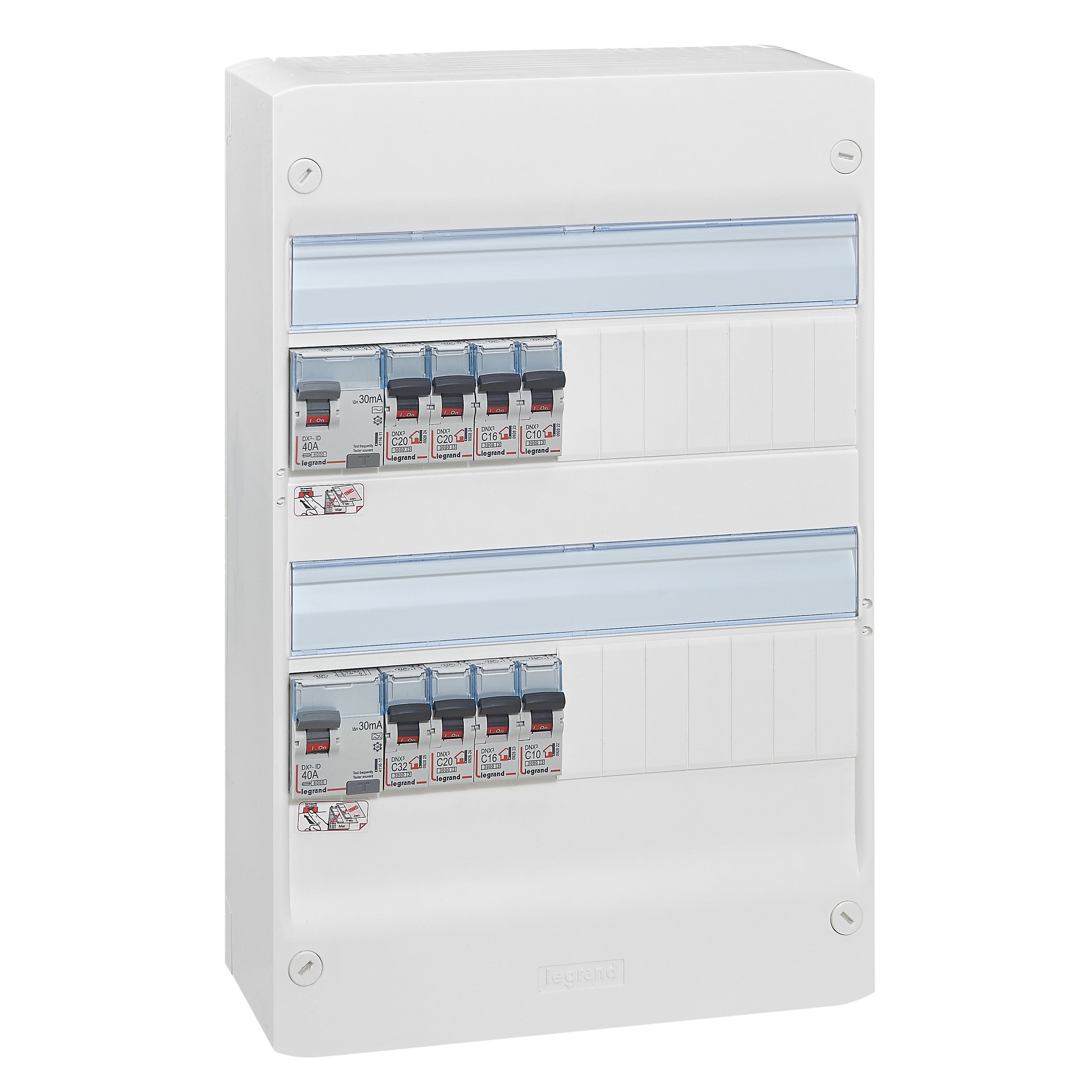 Livré avec le nombre d'appareils de protection requis, le tableau se pose et se raccorde en toute simplicité 2 rangées de 13 modules