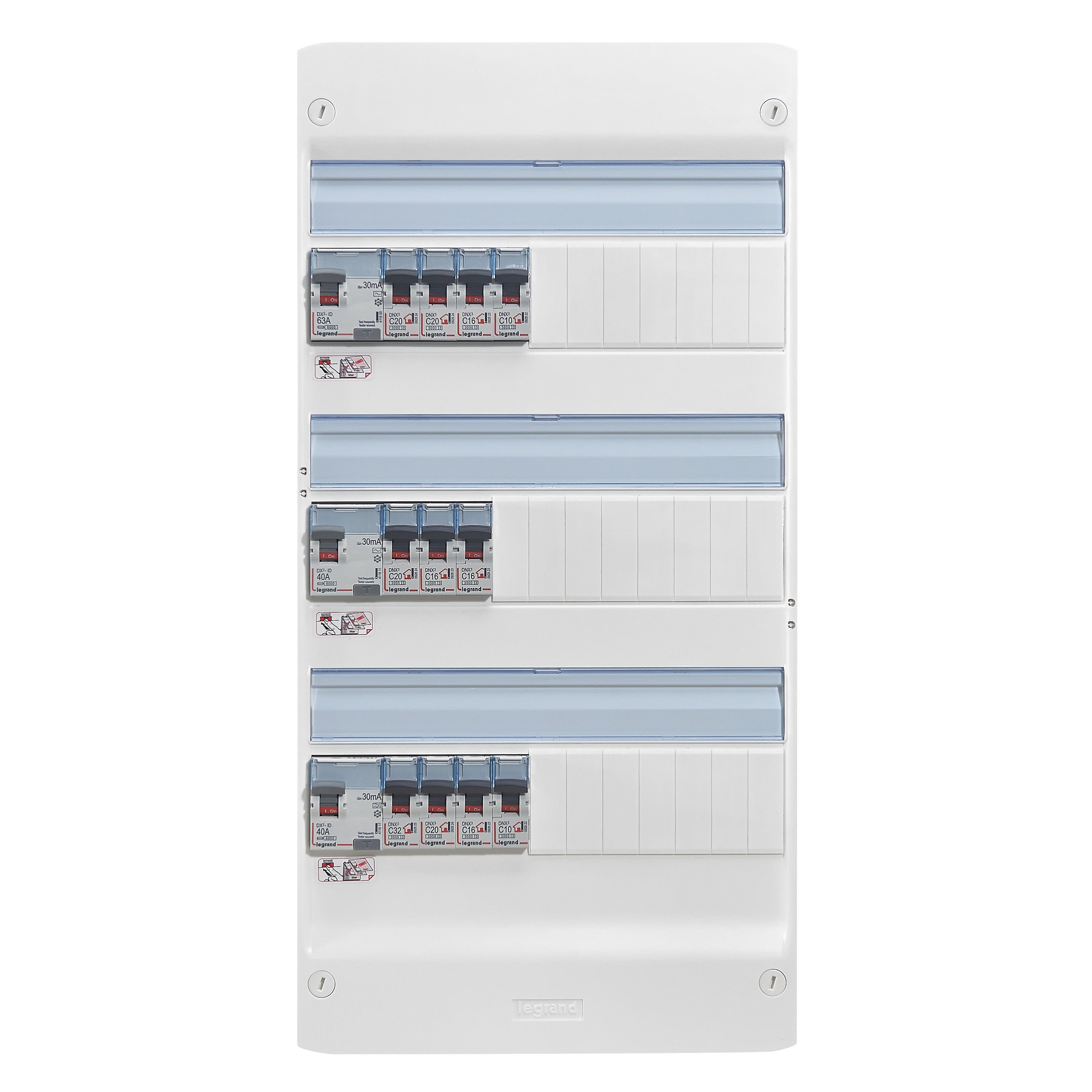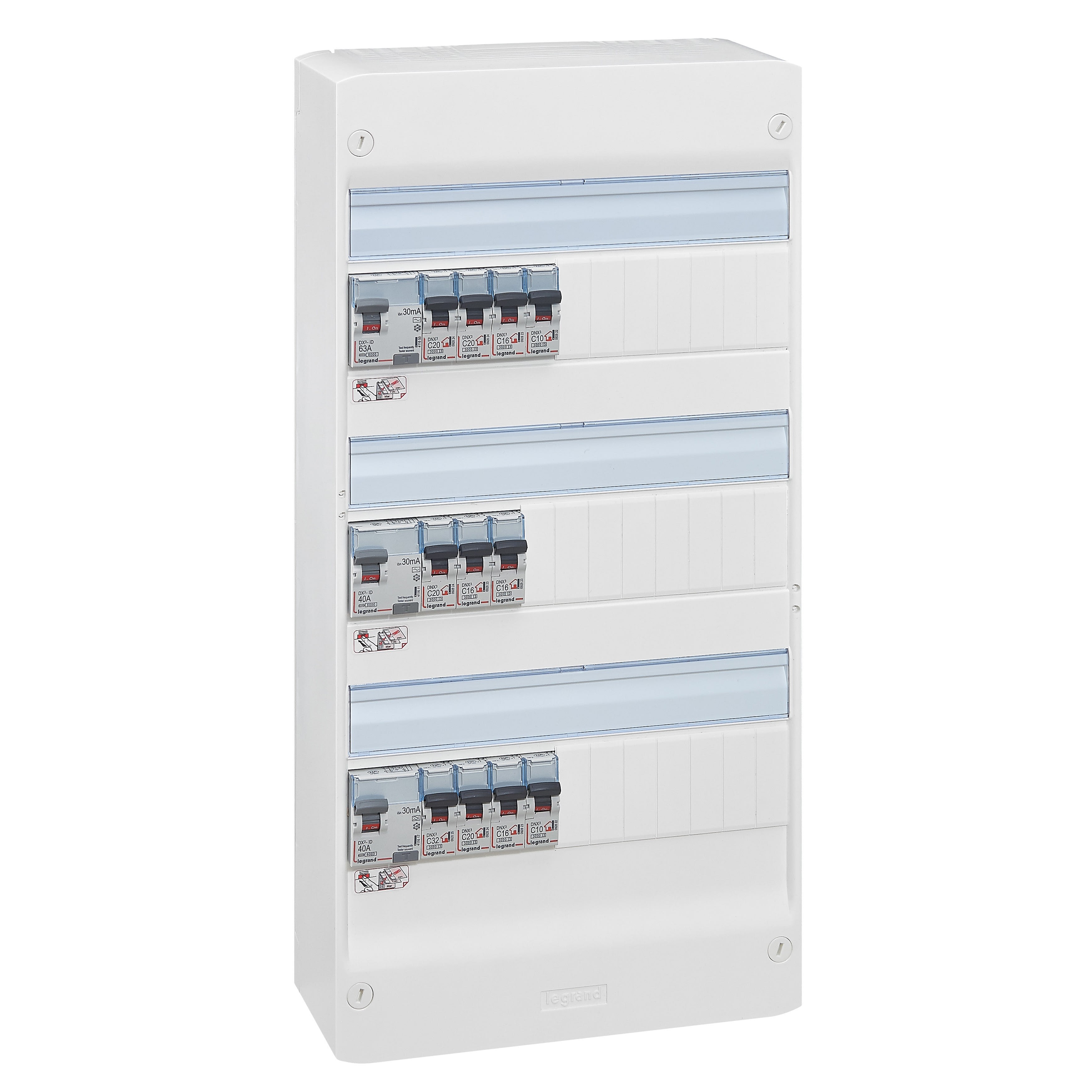 Livré avec le nombre d'appareils de protection requis, le tableau se pose et se raccorde en toute simplicité 3 rangées de 13 modules