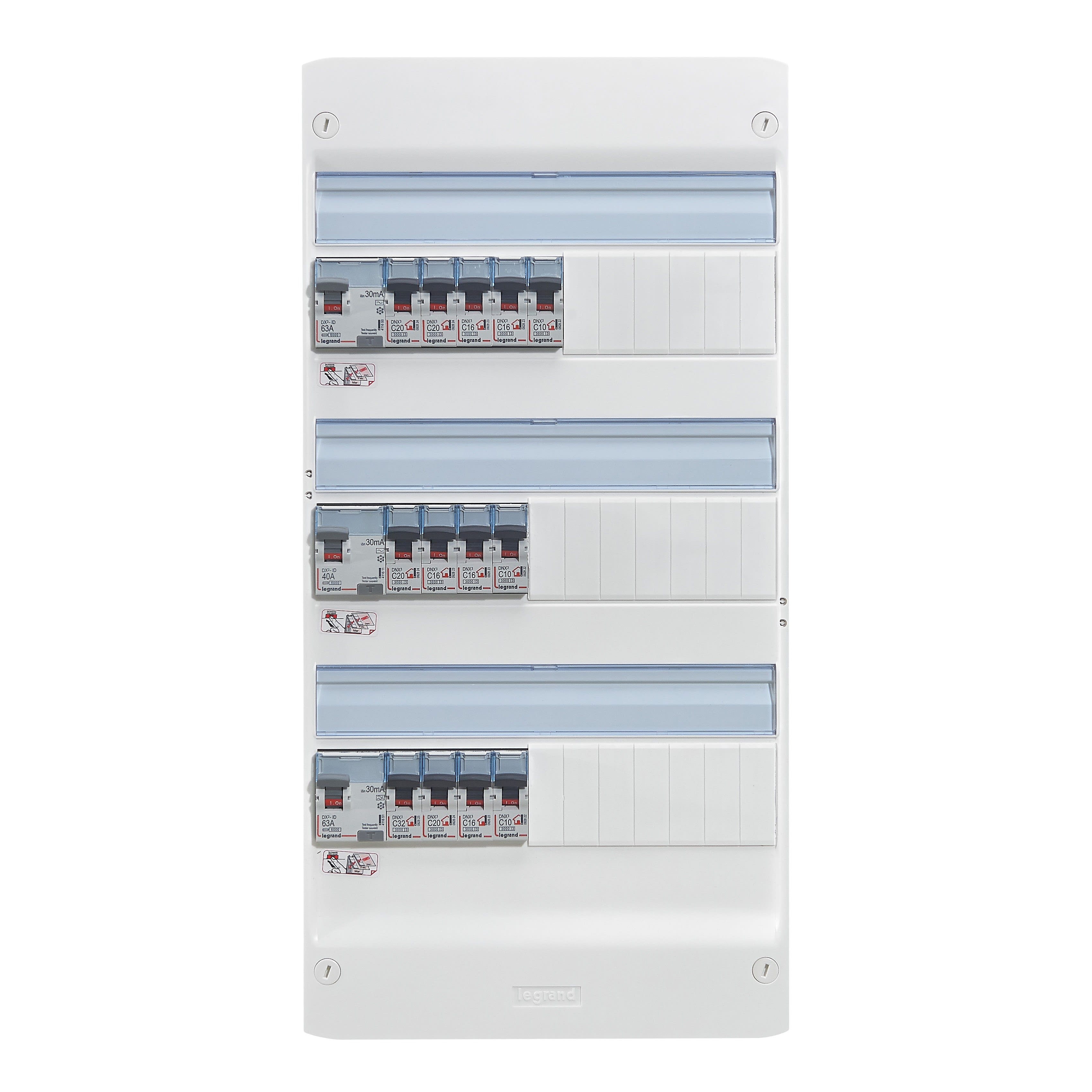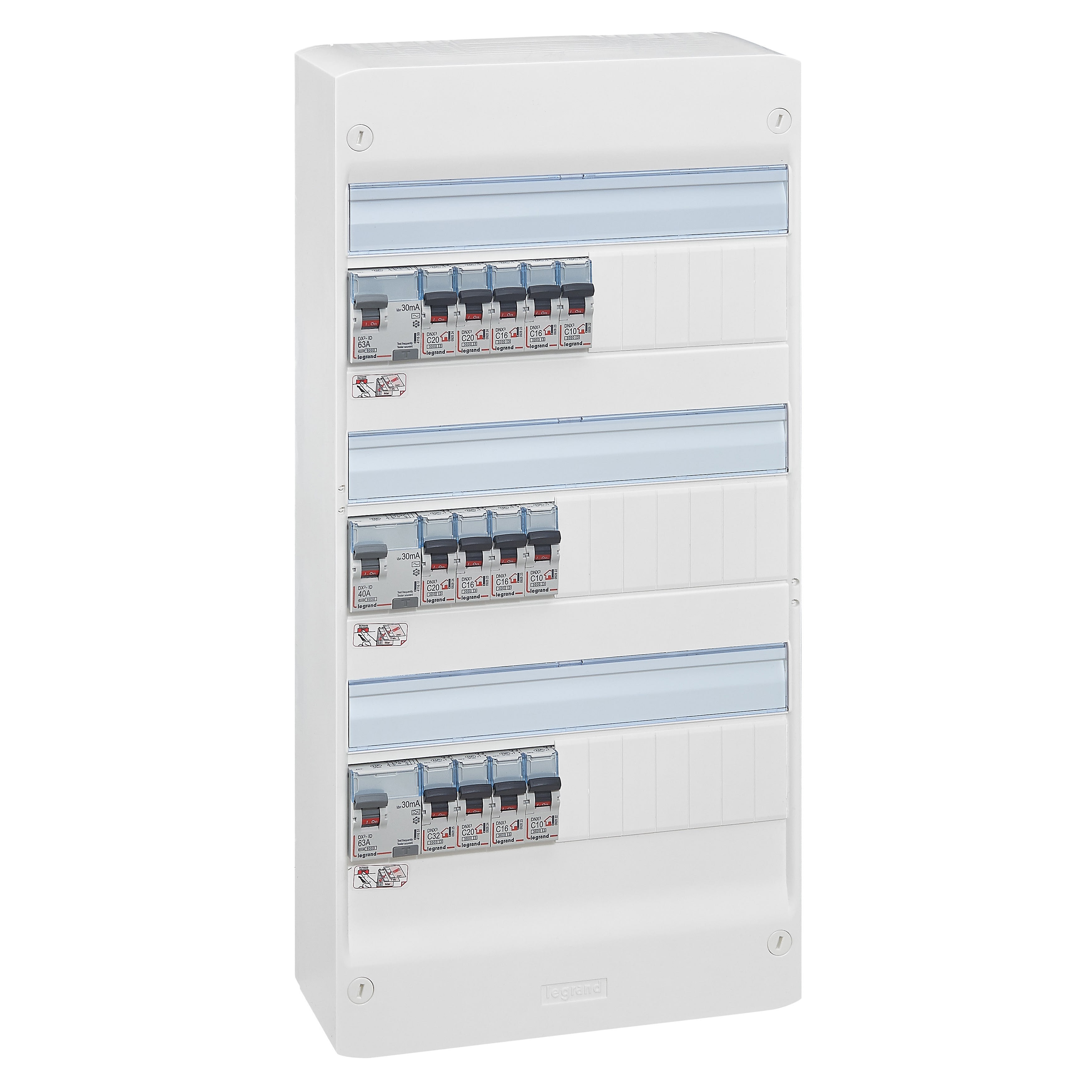 Livré avec le nombre d'appareils de protection requis, le tableau se pose et se raccorde en toute simplicité 3 rangées de 13 modules