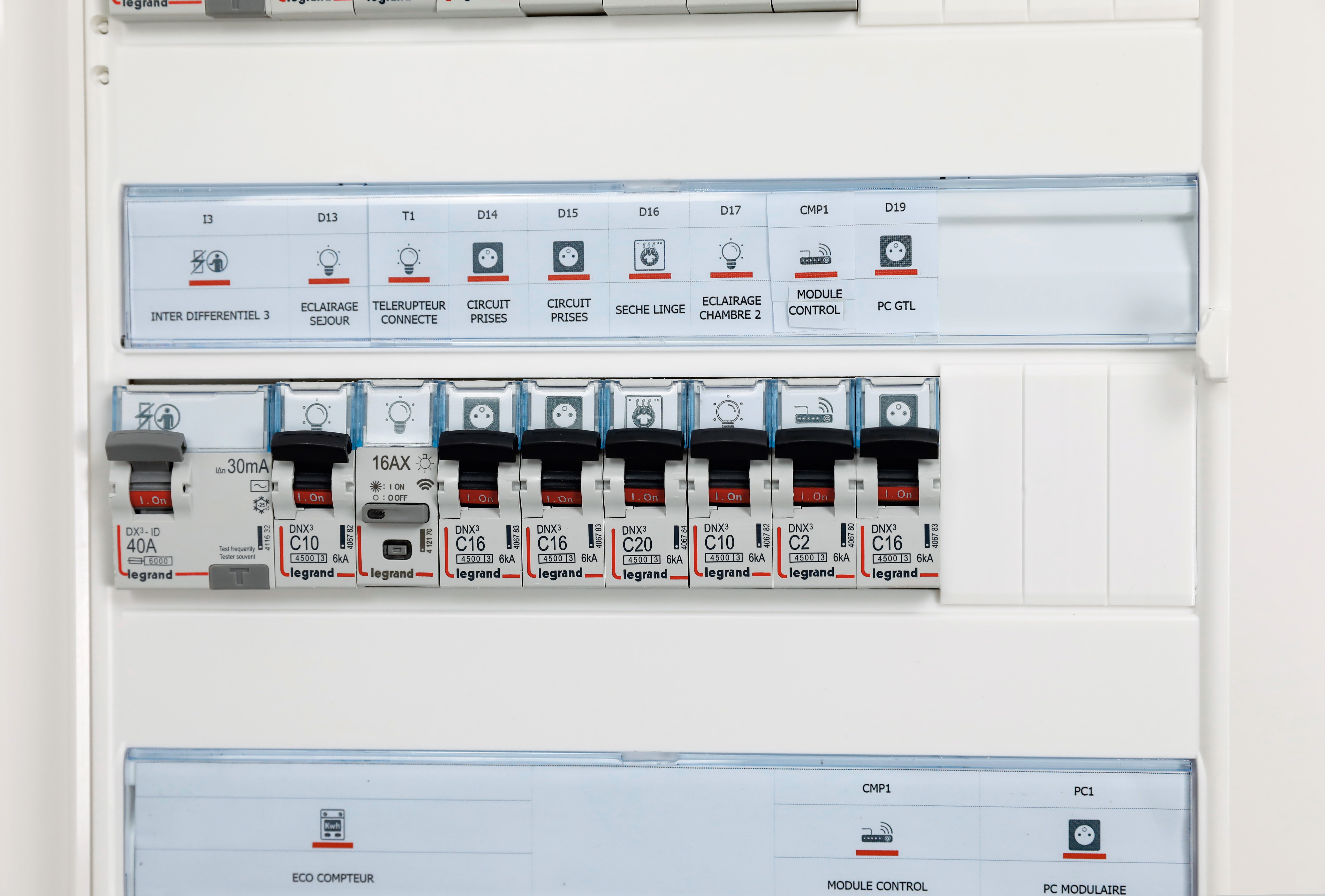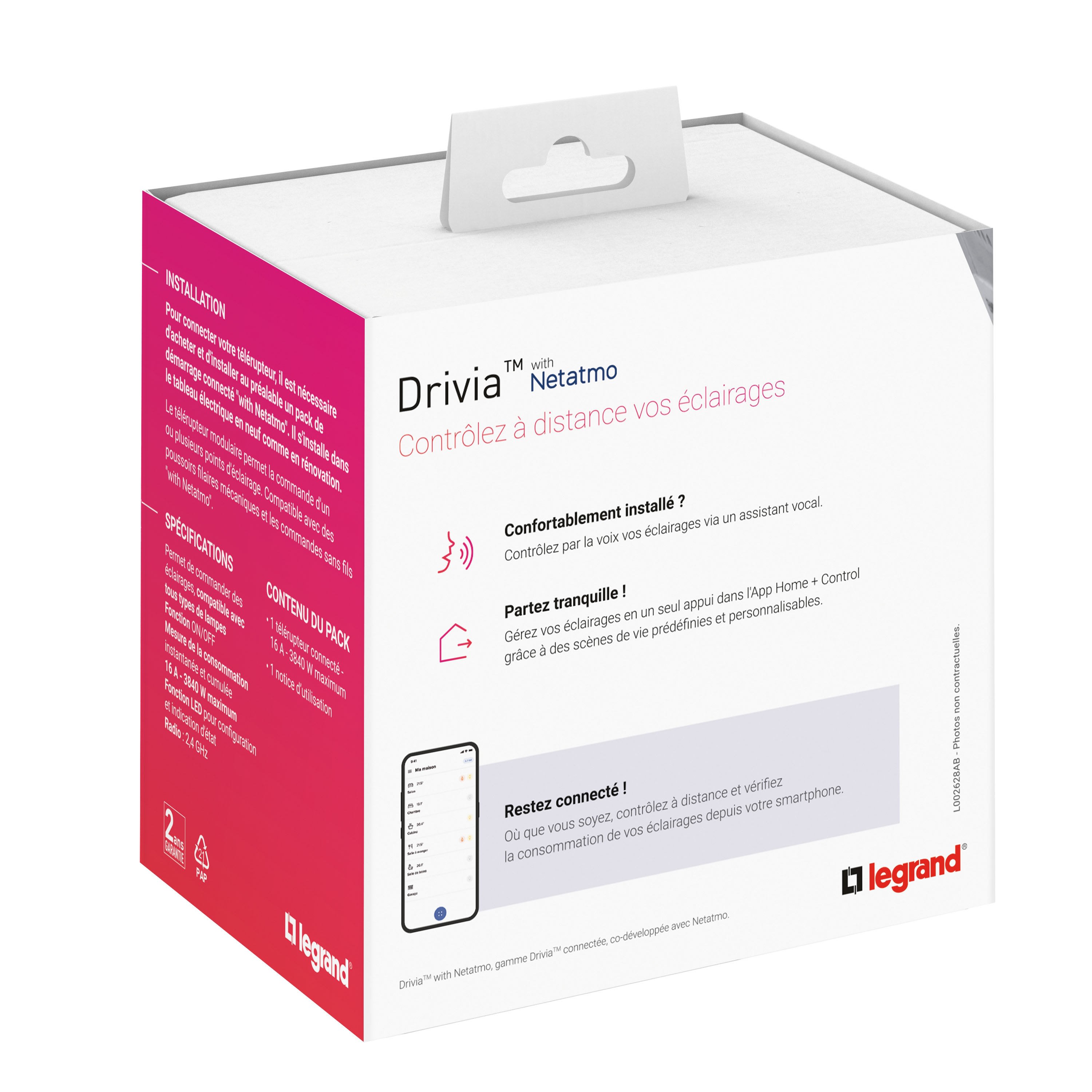 Drivia™ with Netatmo propose des produits modulaires connectés à installer directement dans le tableau électrique, compatibles avec l'application Home + Control et les principaux assistants vocaux. Ces fonctions permettent de contrôler la production et la consommation d'énergie et de réduire la facture grâce aux fonctionnalités de gestion et contrôle de l'énergie. La mise en oeuvre est simple avec un câblage classique et intuitif avec l'appairage des autres fonctions with Netatmo