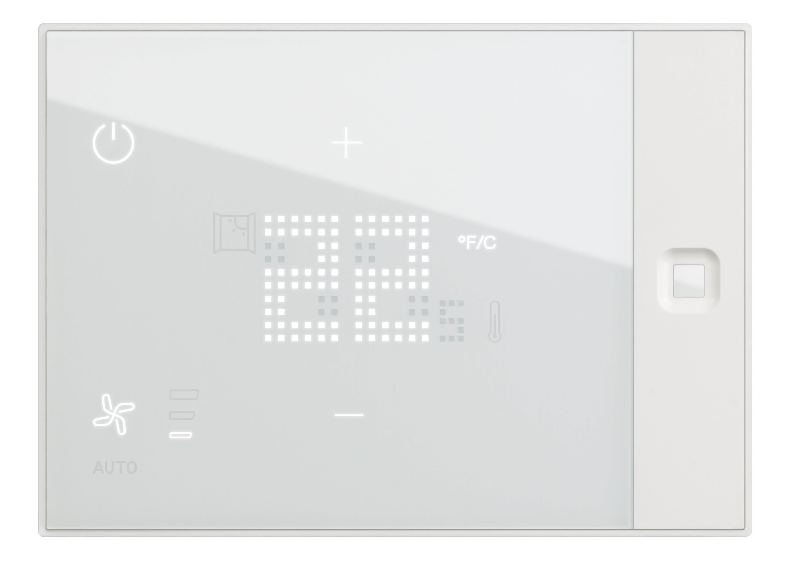 Le thermostat est dédié à l'hôtel et peut être utilisé sur les installations de chauffage et de climatisation Il permet de visualiser et de contrôler la température de consigne, la vitesse de ventilation et la commutation de la protection thermique L'écran affiche la température ambiante ou la température de consigne Un capteur de proximité peut détecter une occupation à l'intérieur de la pièce et activer la LED de rétroéclairage
