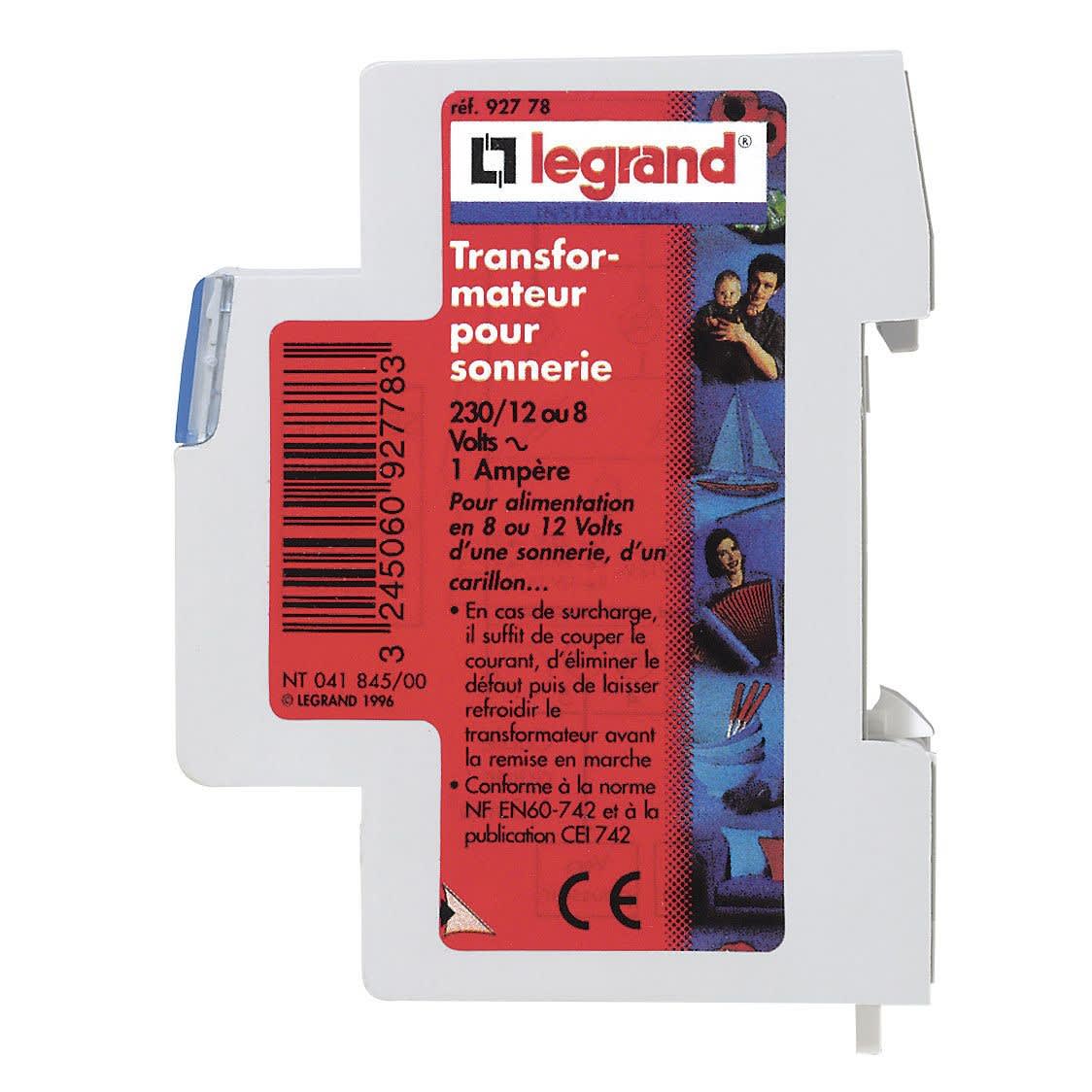 Legrand - Transformateur pour sonnerie 8V à 12V - 0,66A à 1A - 2 modules - 092778