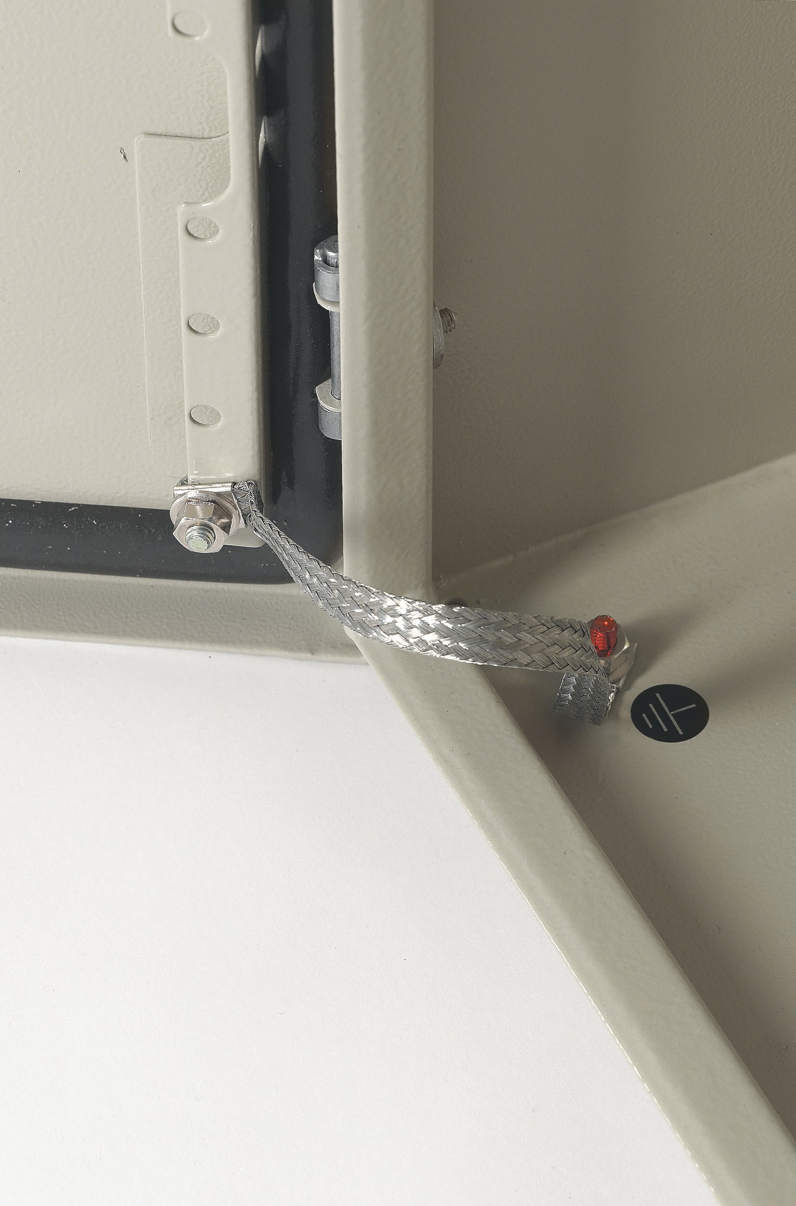 Tresse de masse Conducteur de protection pour coffret ou armoire Capacité 6mm² Entraxe de fixation 200mm Ø des trous 8,5mm