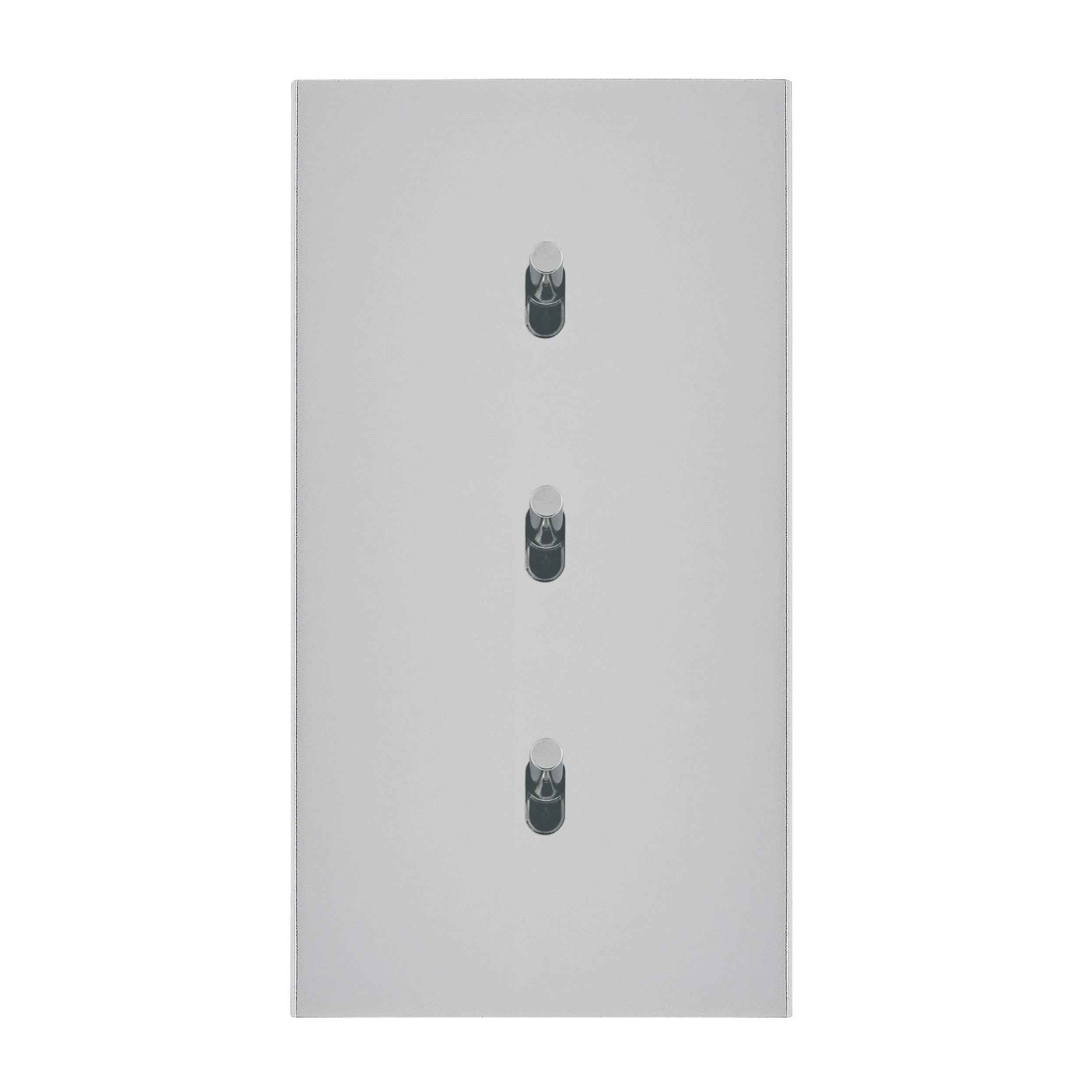 Trois va-et-vient 10A à levier cylindrique Art d'Arnould Univers Epure Acier satin Leviers chromés Dimensions grand carrée double 80x151mm Se monte dans boîte d'encastrement 2 postes