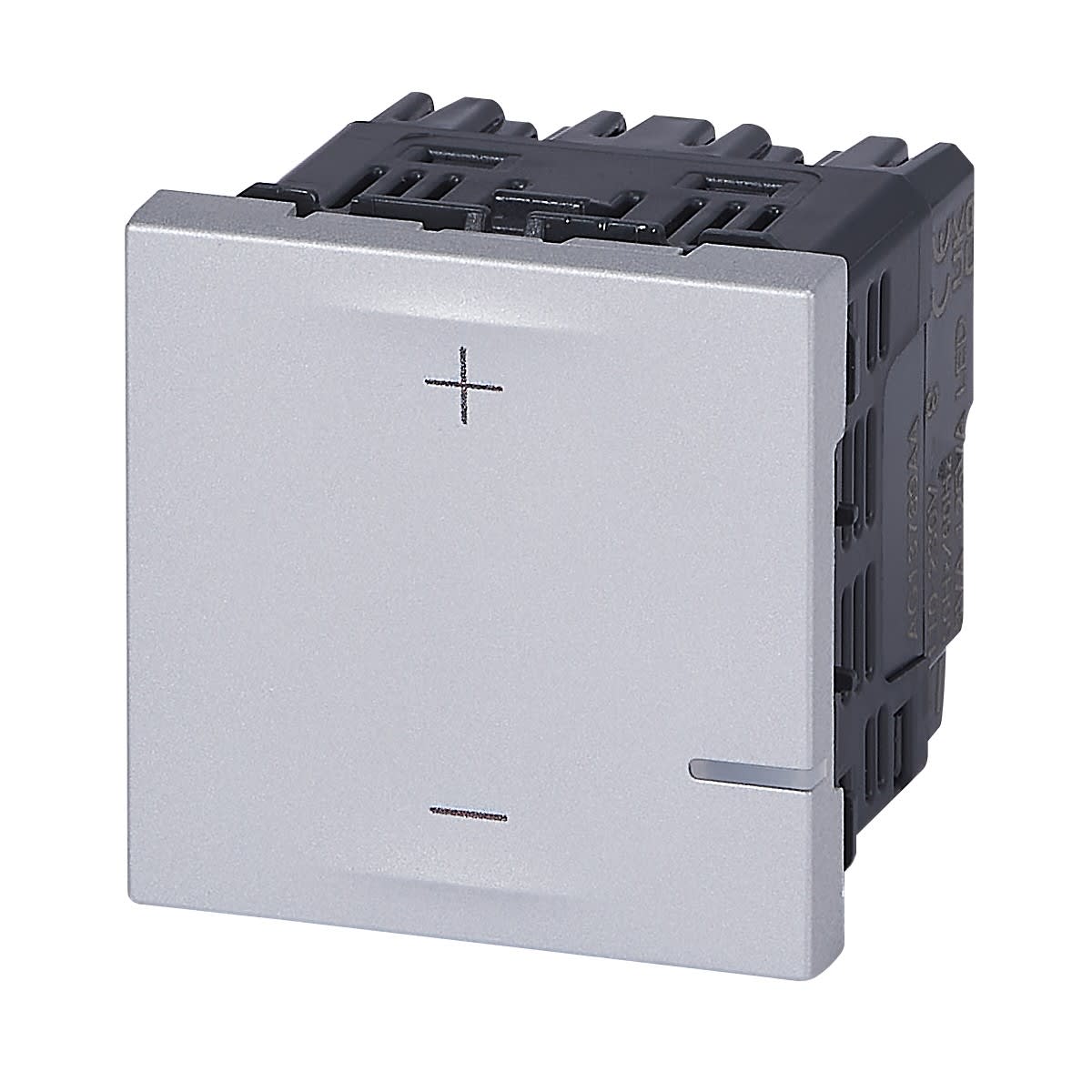 Permet de commander les lampes 125W maximum de type dimmable, LEDs, halogènes, fluocompact du marché Avec réglage butée haute et basse d'éclairage Câblage 2 fils avec Neutre Encombrement réduit : compatible avec boîte profondeur 30mm 2 modules - Couleur Aluminium